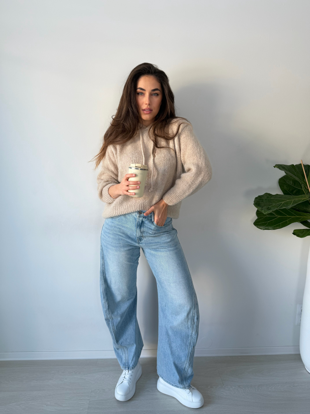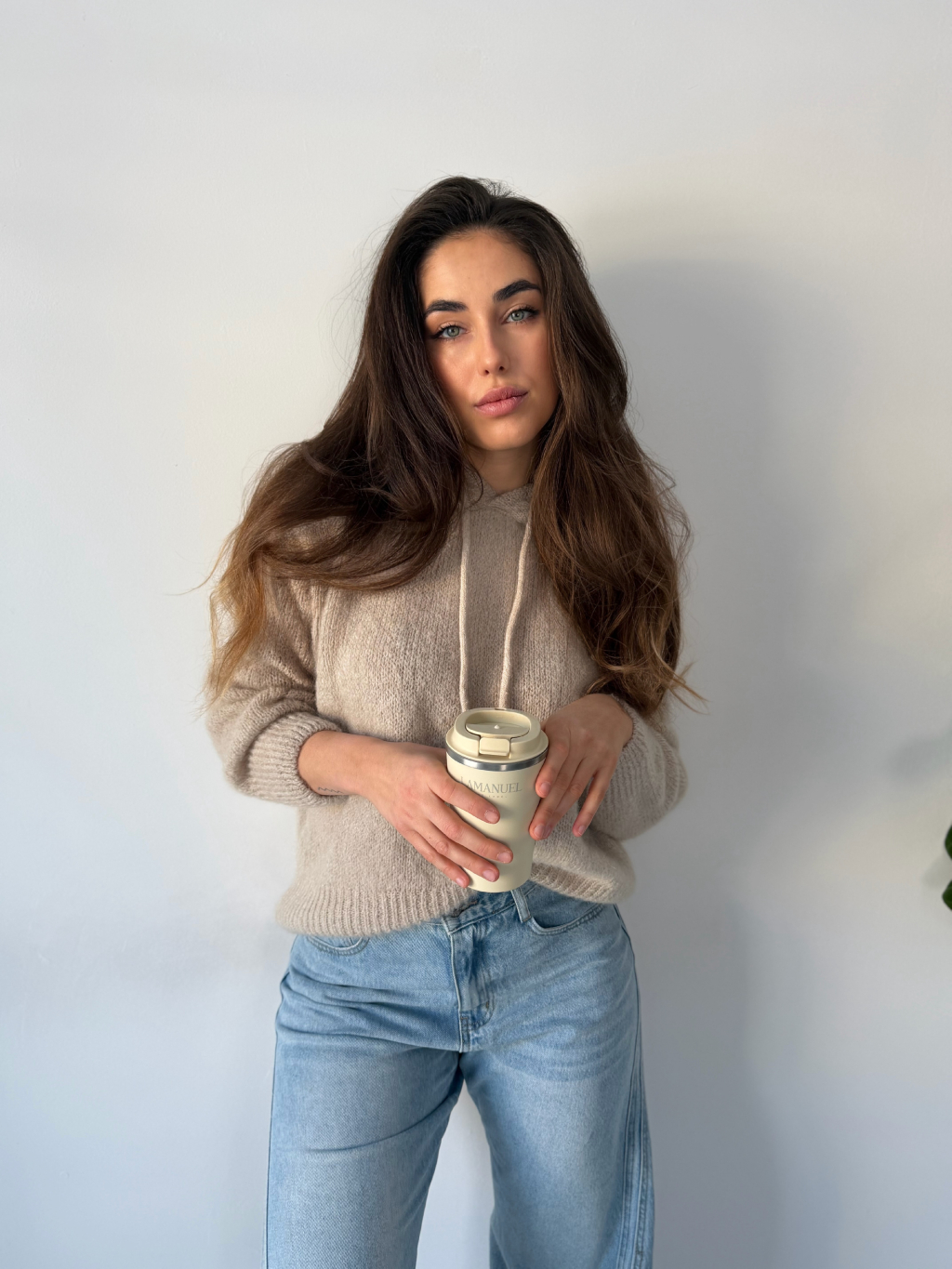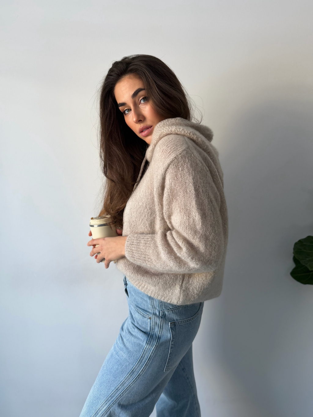 MOHÉROVÝ SVETR S KAPUCÍ KRÉMOVÁ