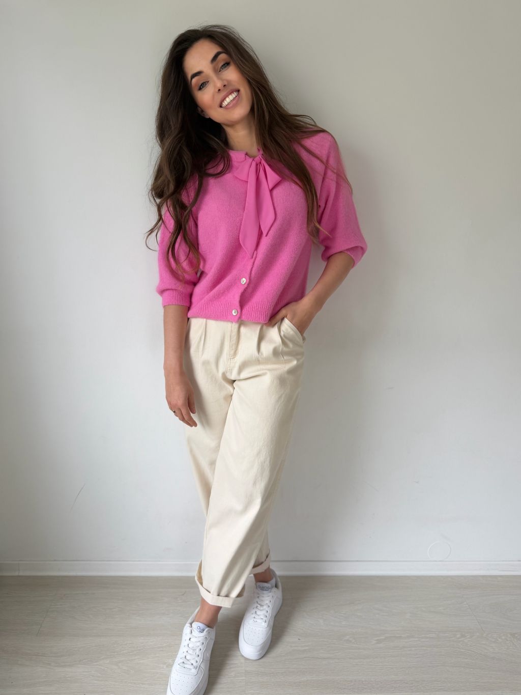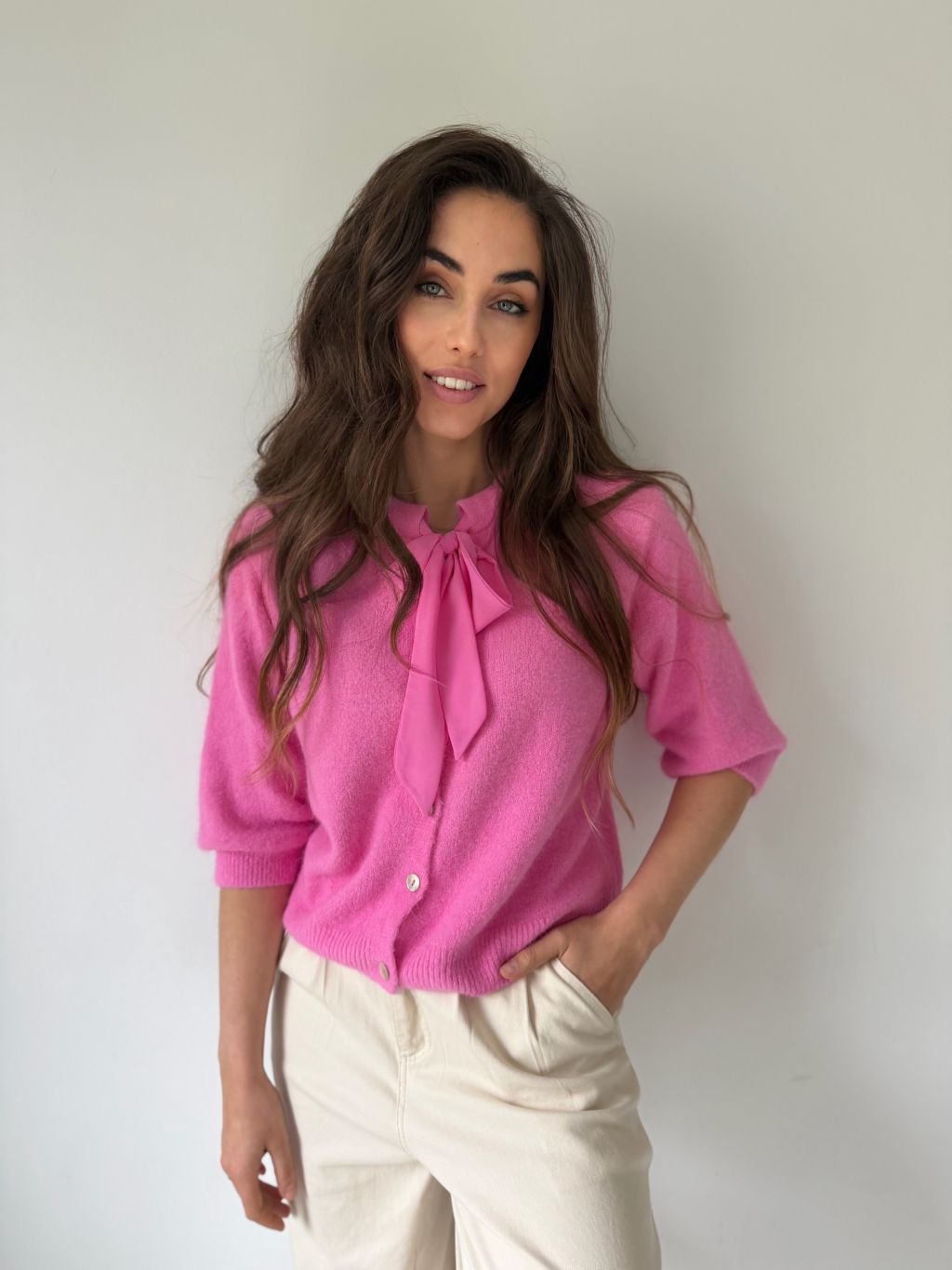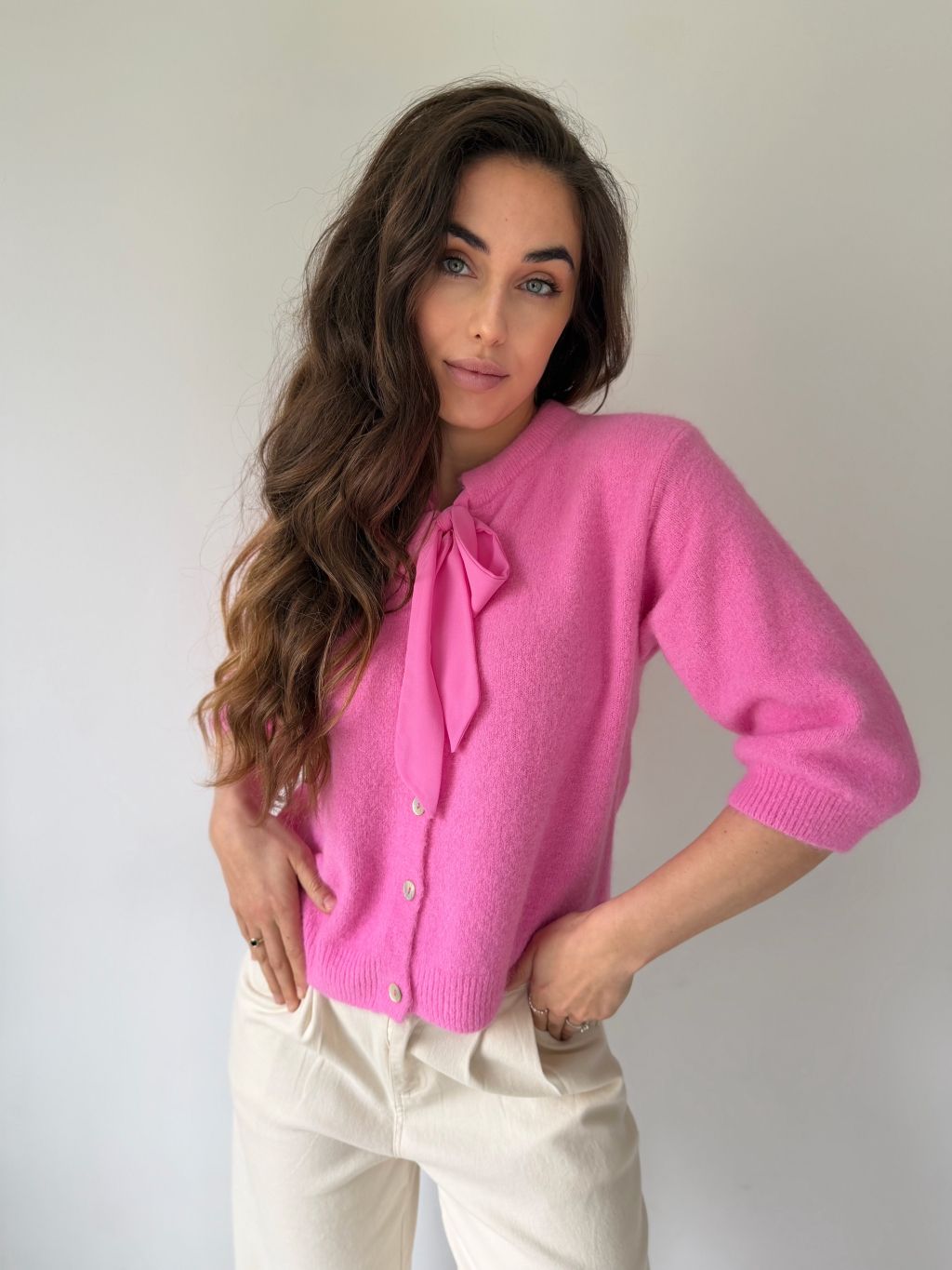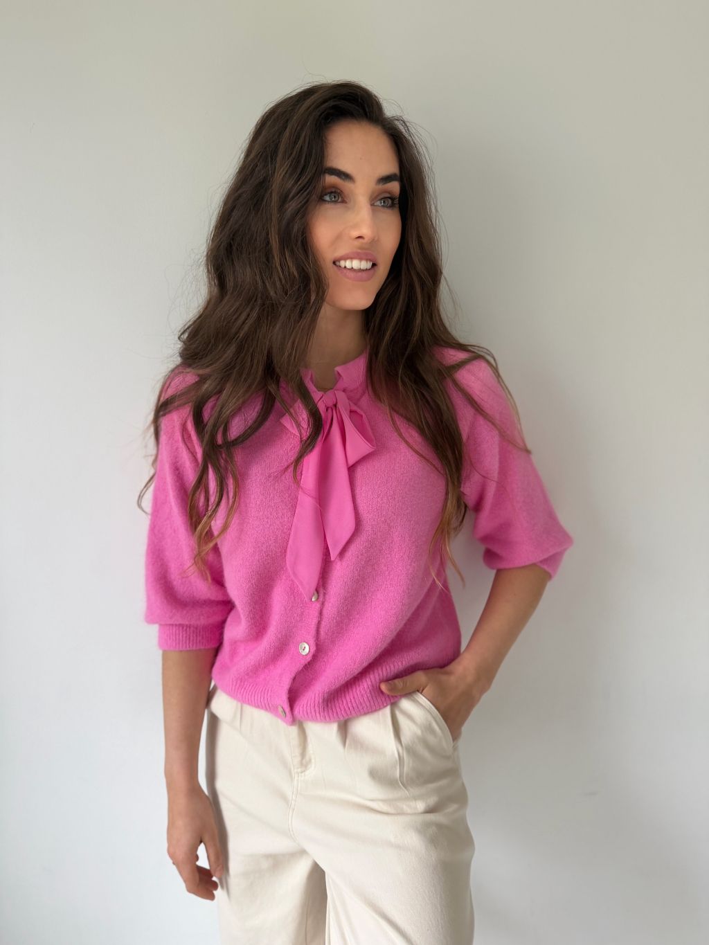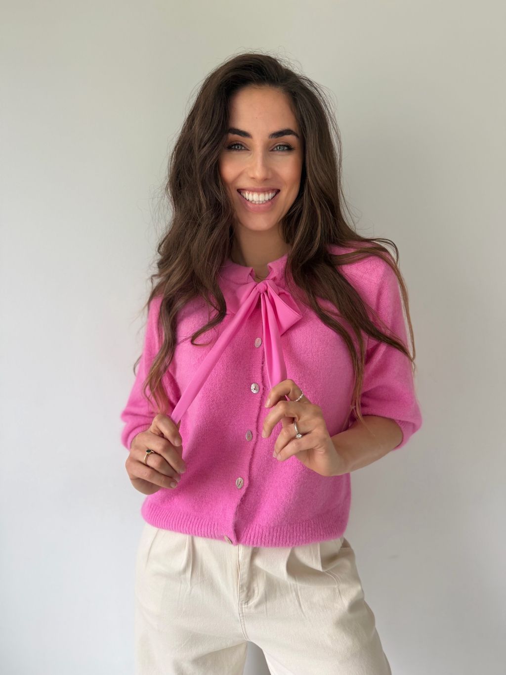 Luxusní svetřík se zapínáním na knoflíky a mašličku.
