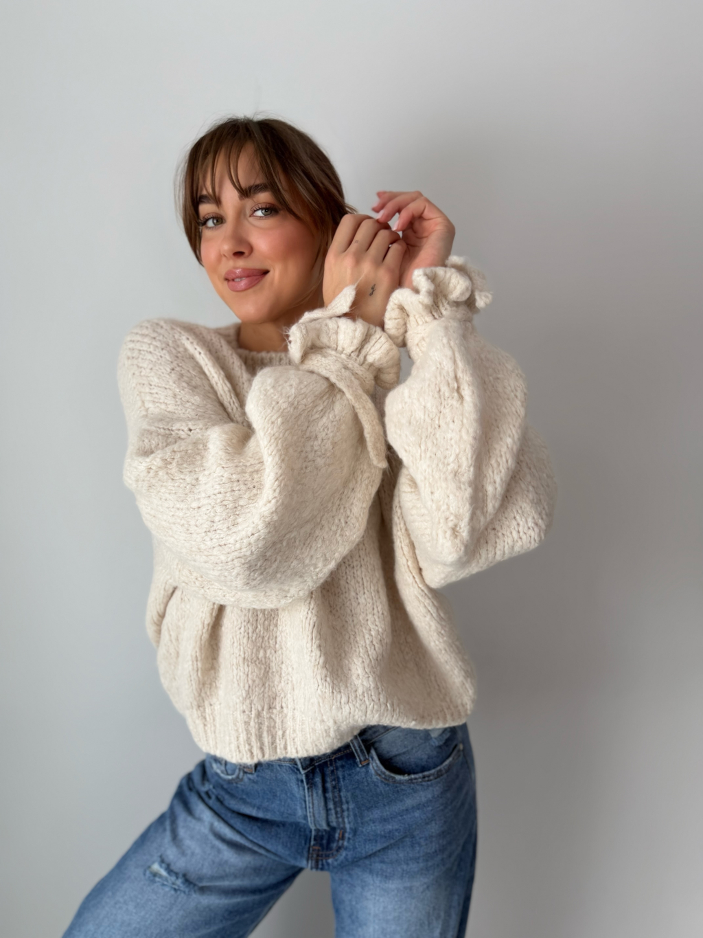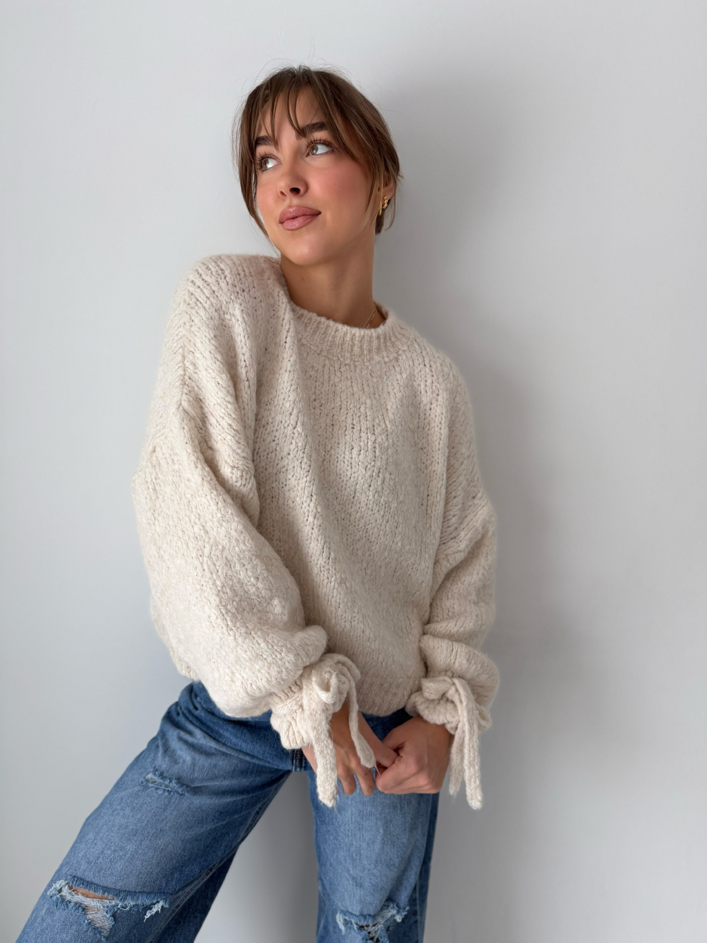 Svetr onny s mašlí krémová