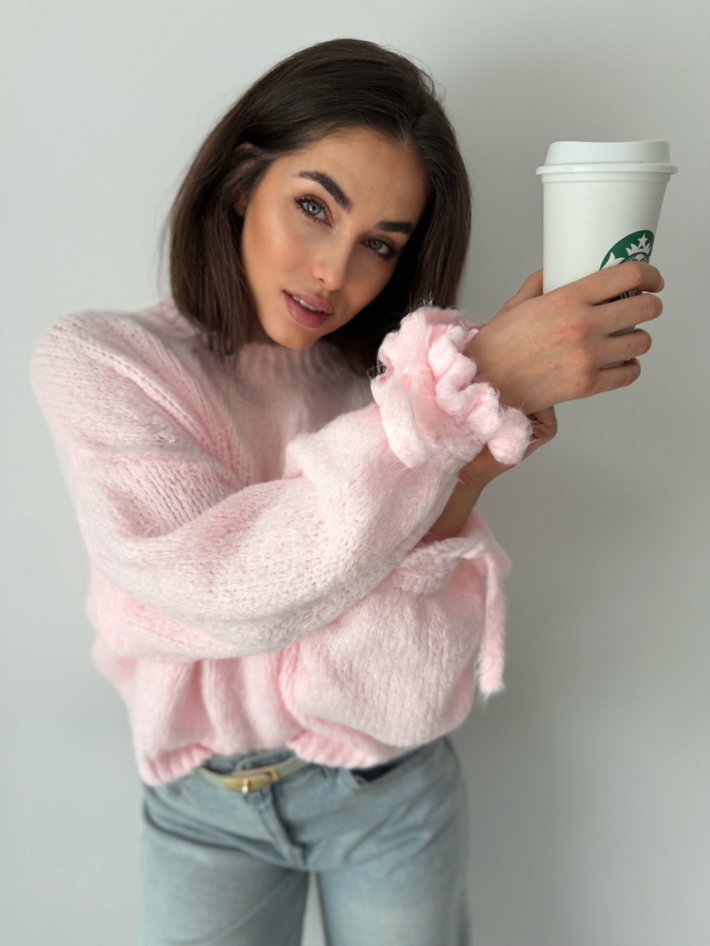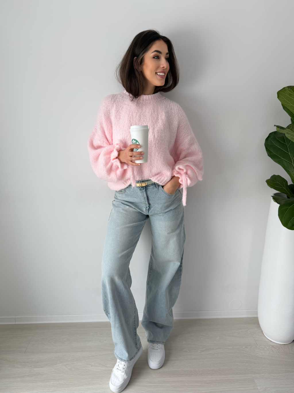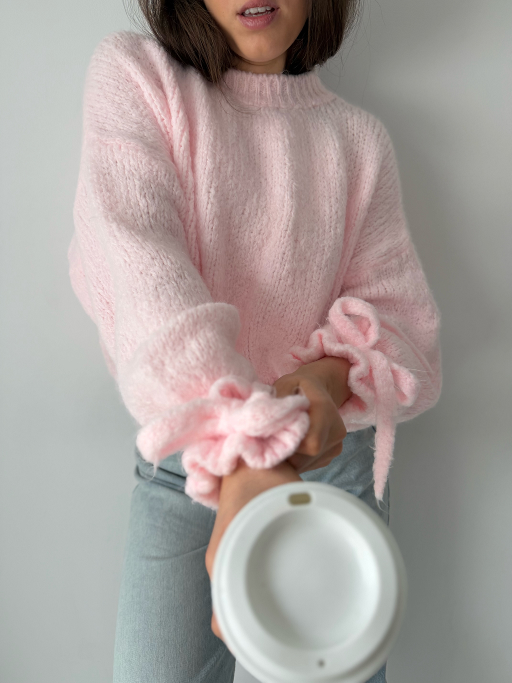Svetr Onny s mašlí kolem zápěstí.