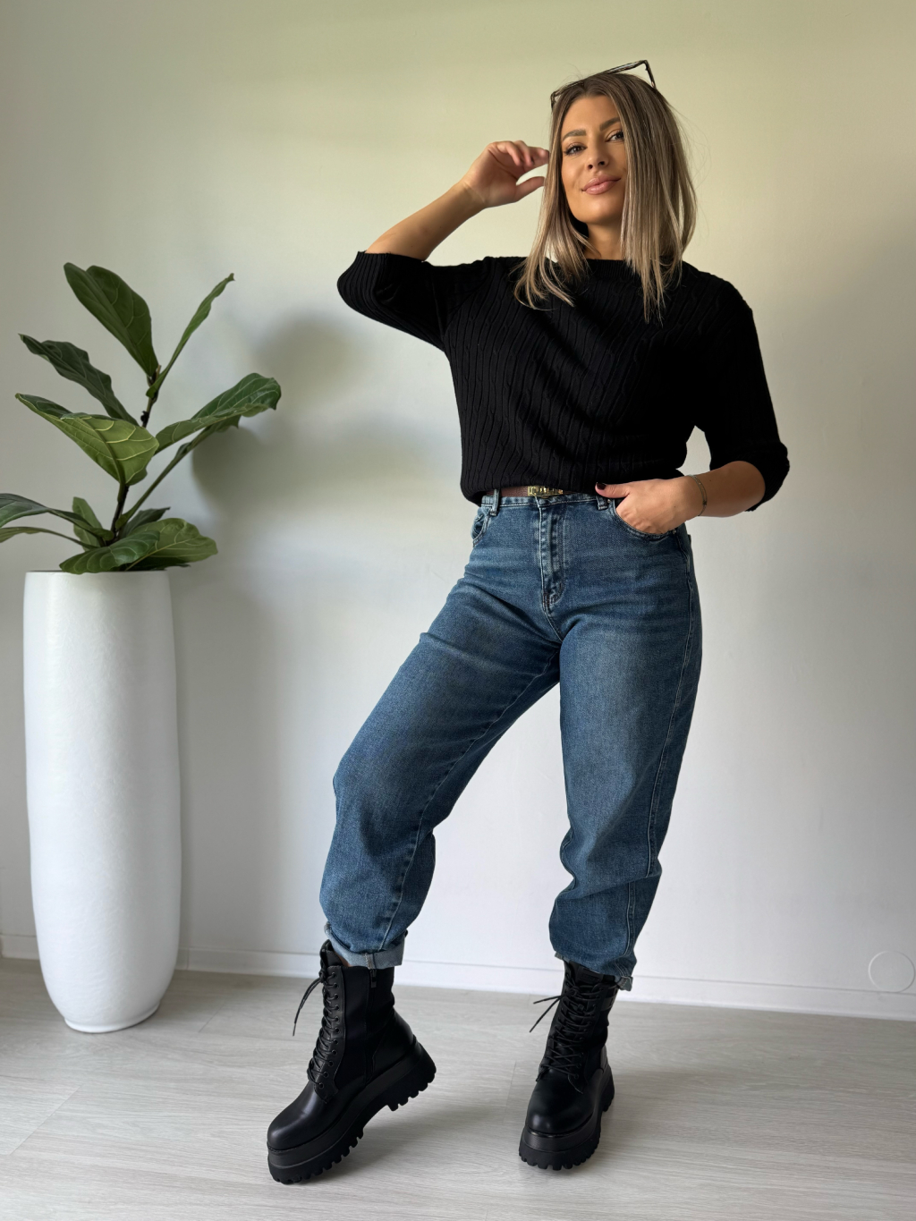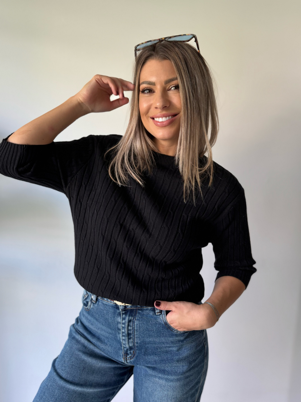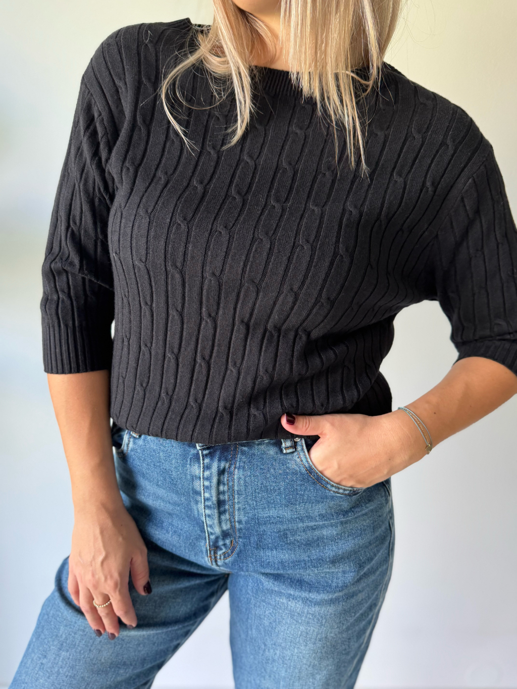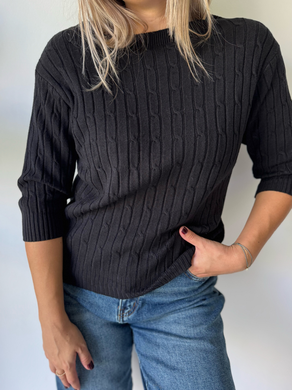 Svetr s copánkovým vzorem černá