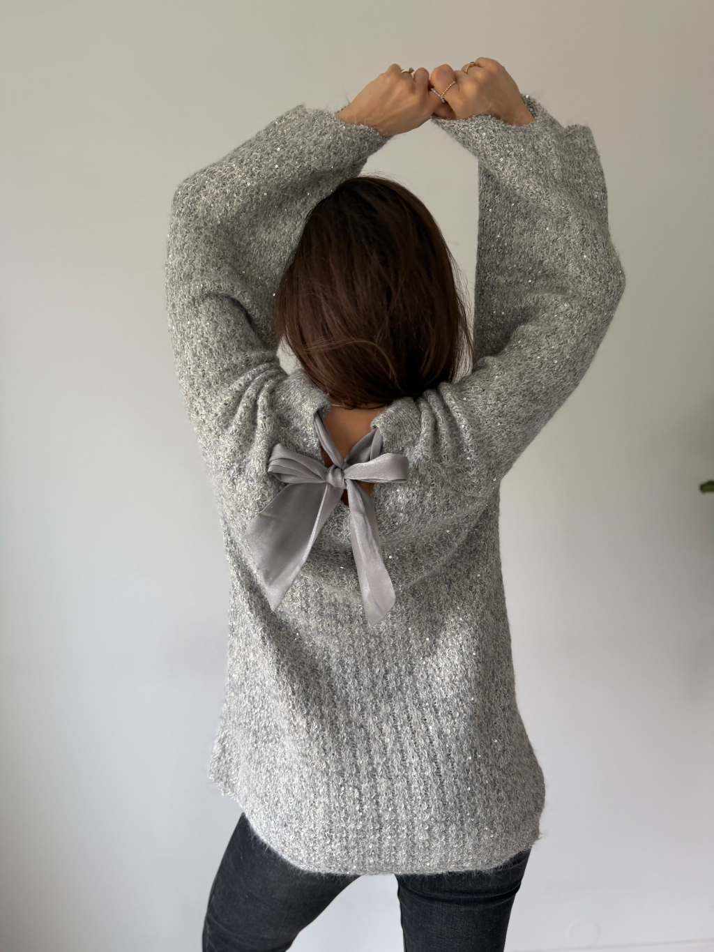 Svetr s flitry, svetr, volný svetr, svetr s mašlí