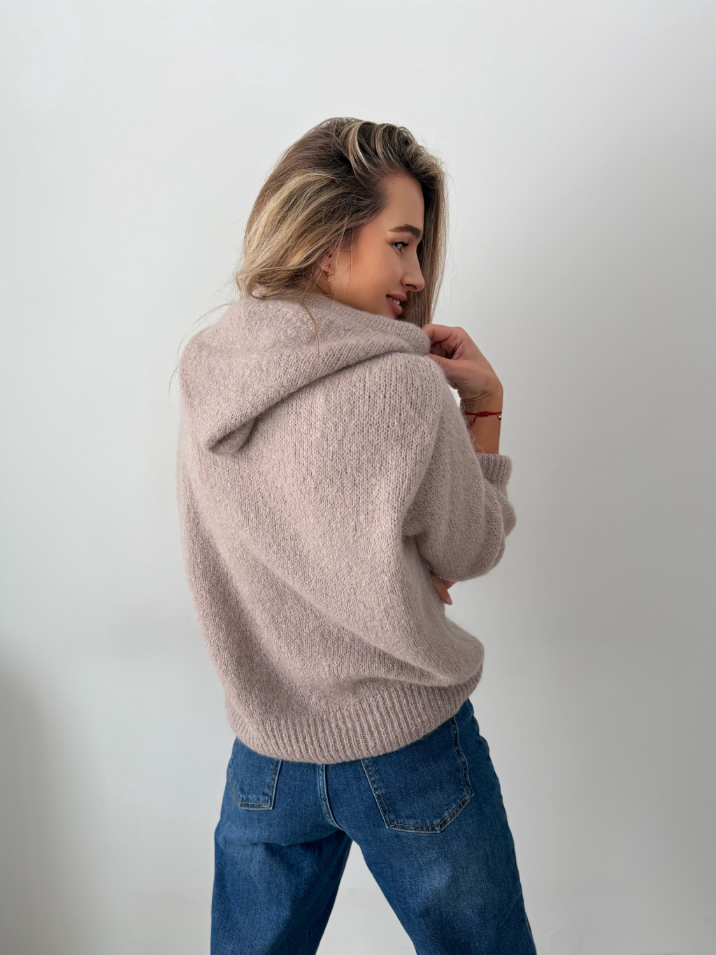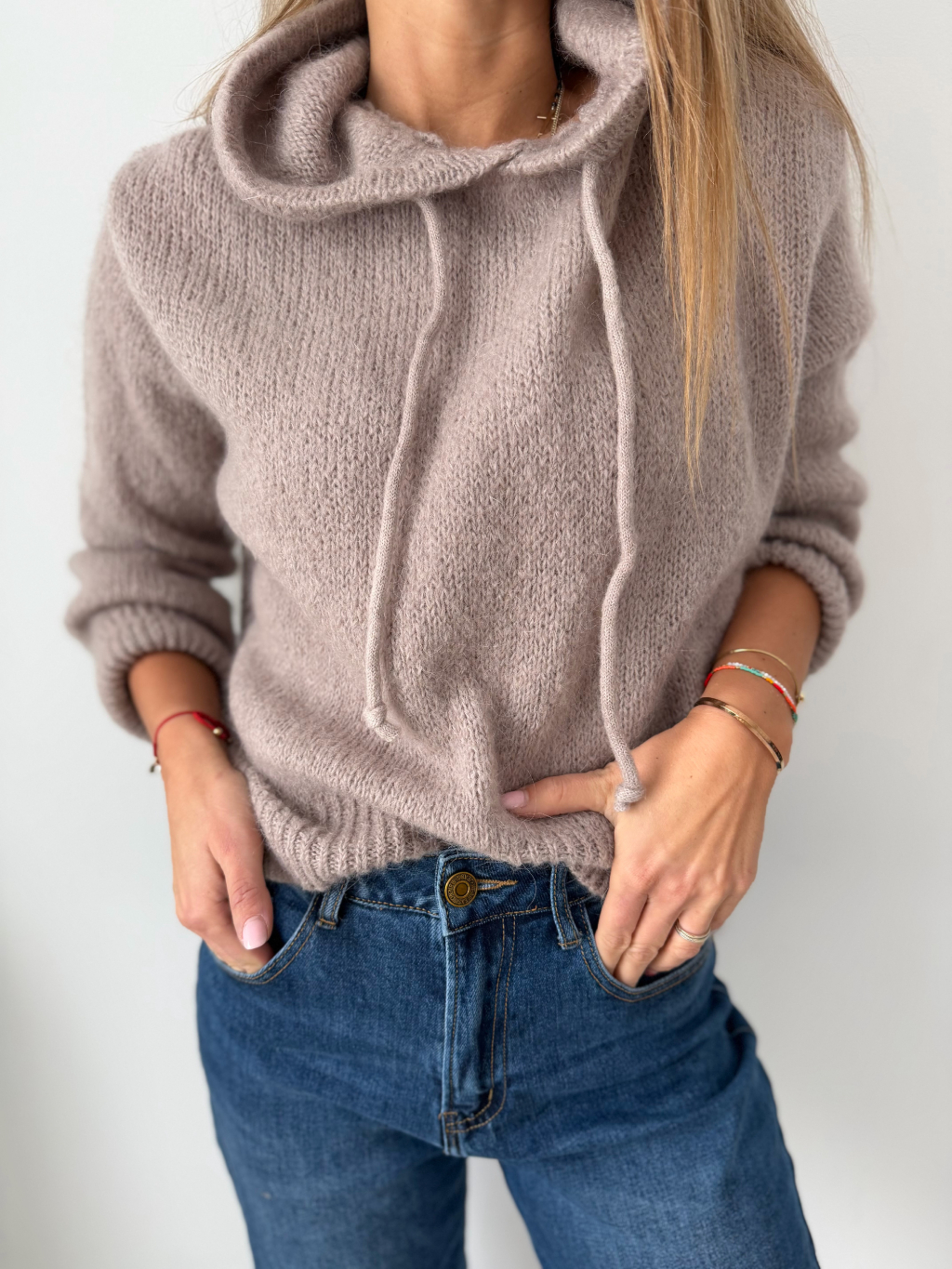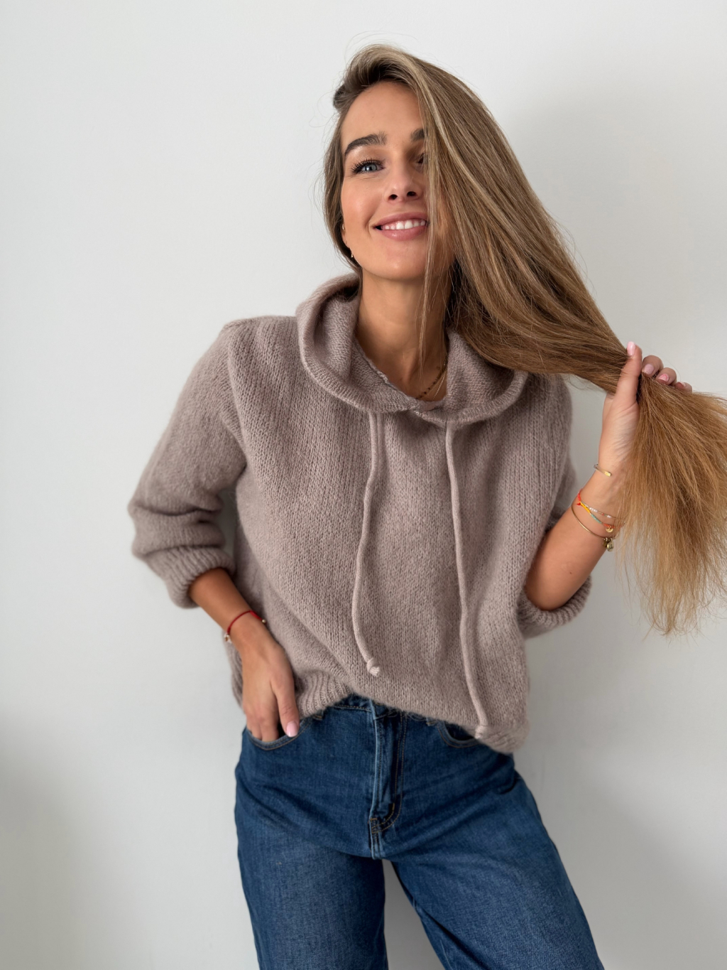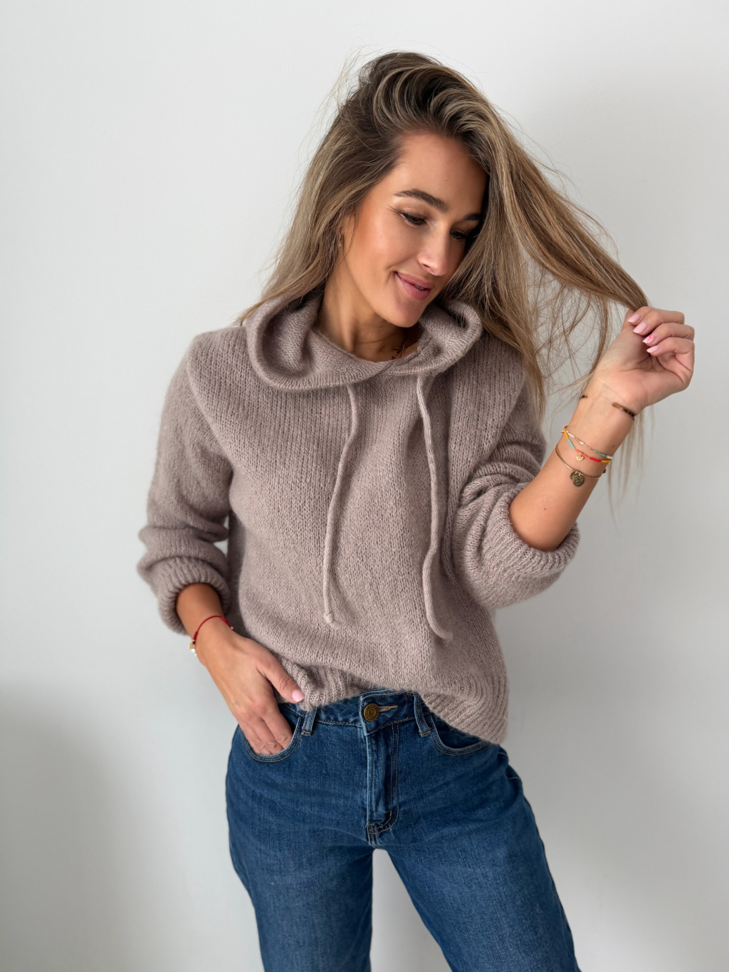 Mohérový Svetr s kapucí mocca