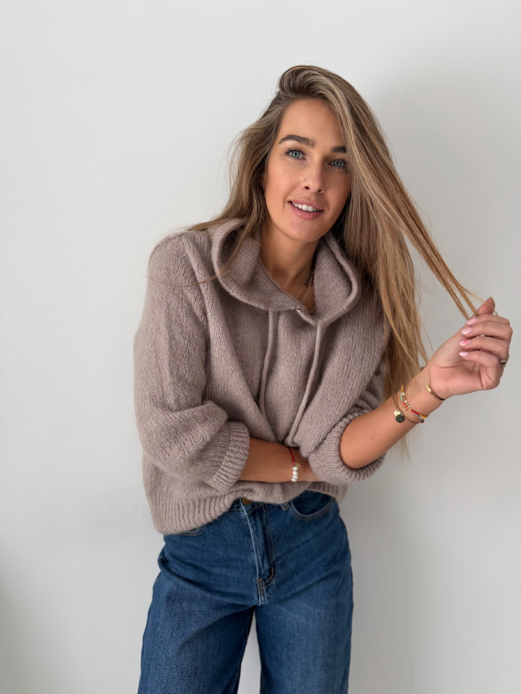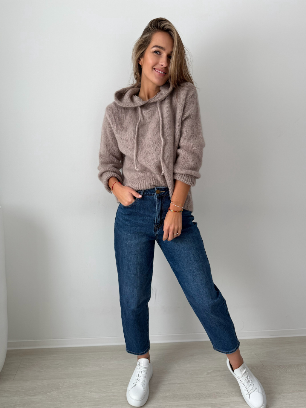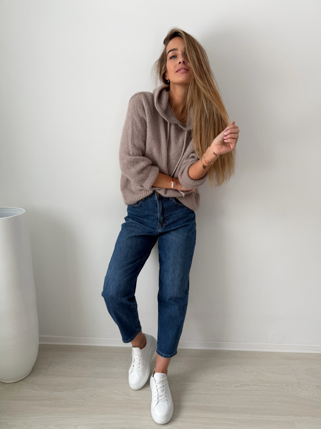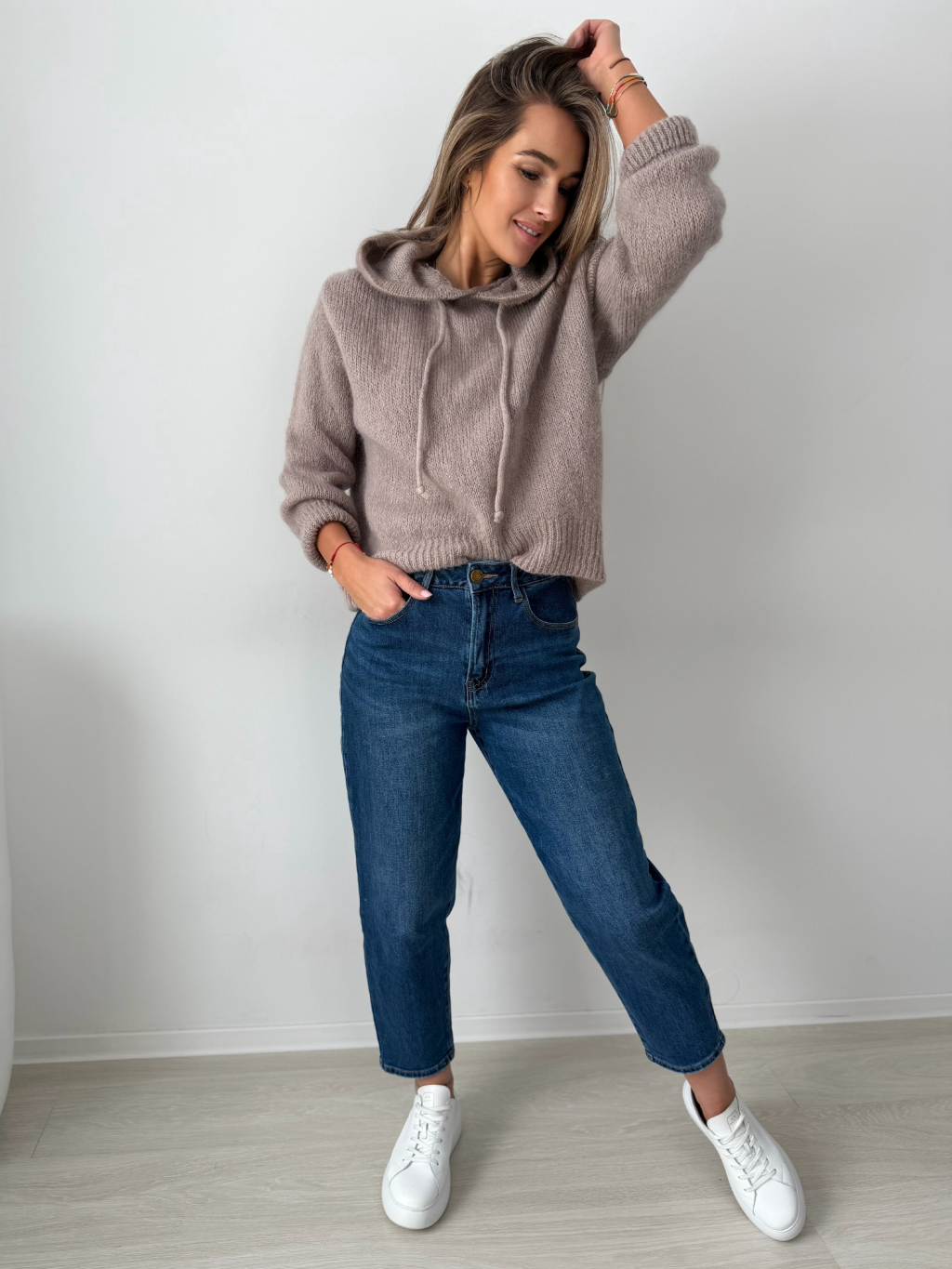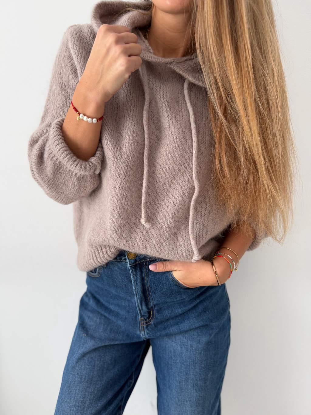 Mohérový Svetr s kapucí mocca