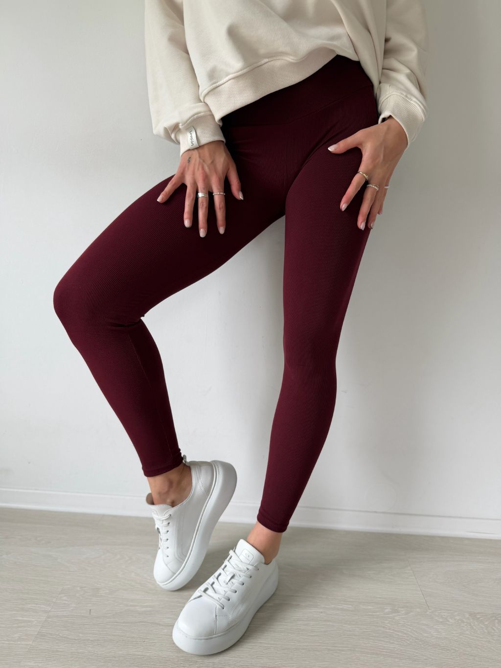 Legíny žebrované bordo