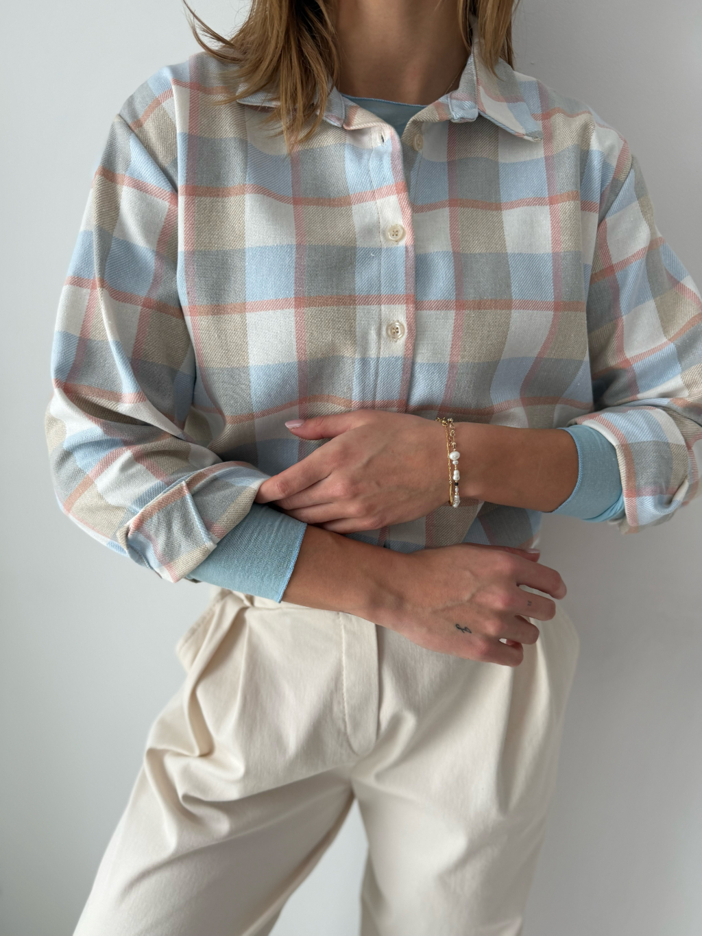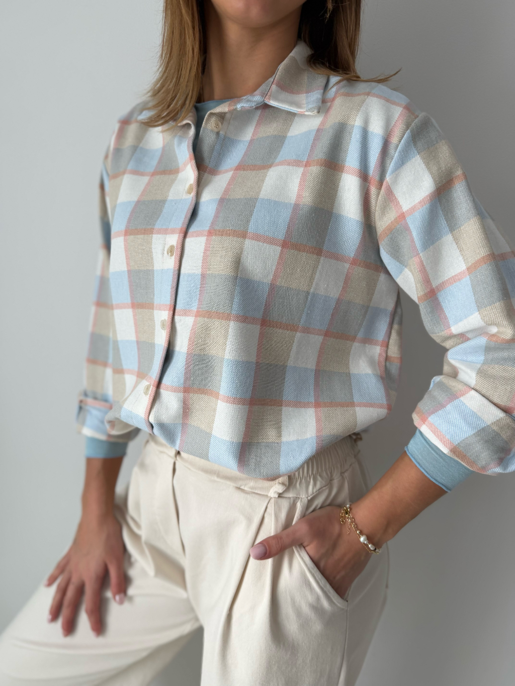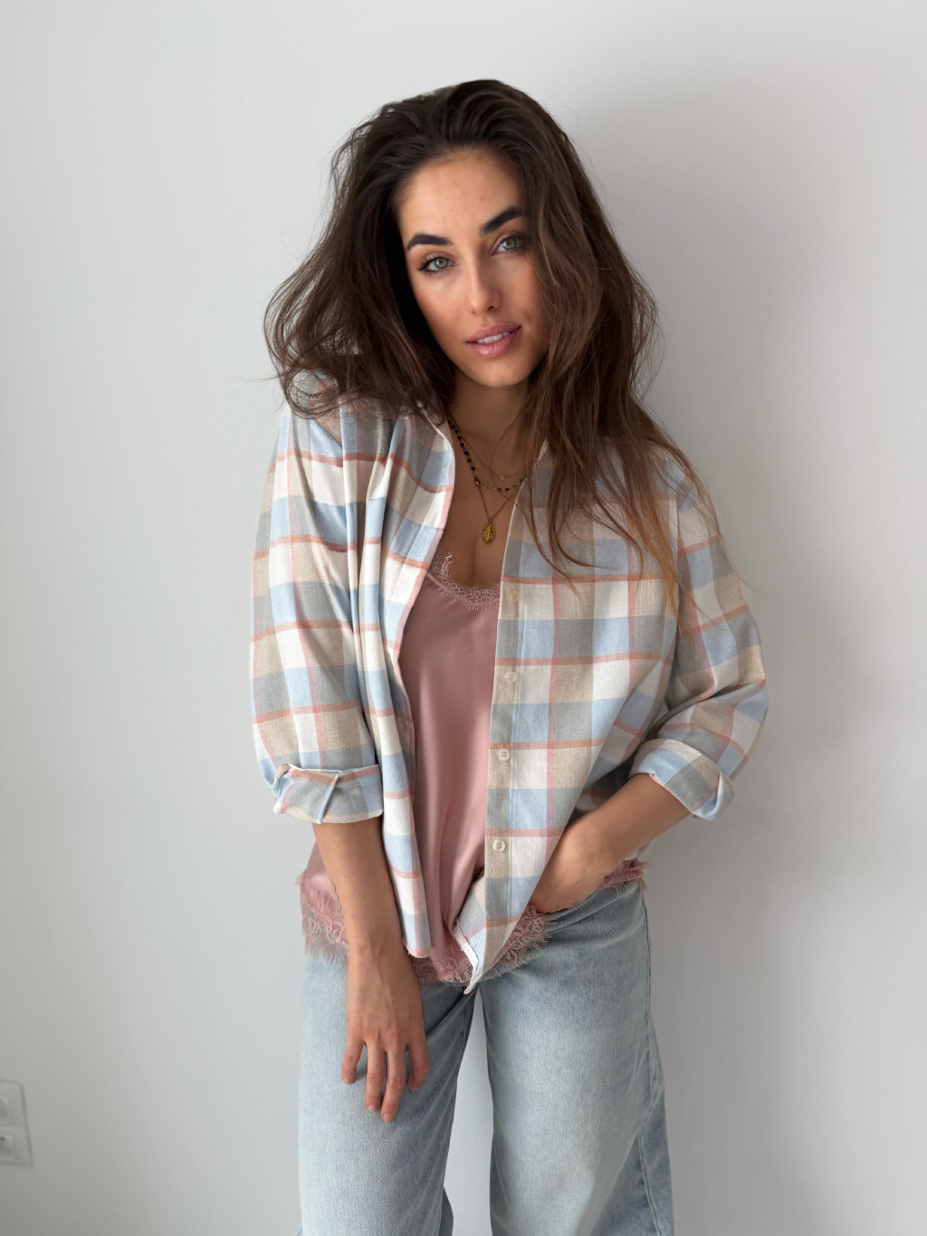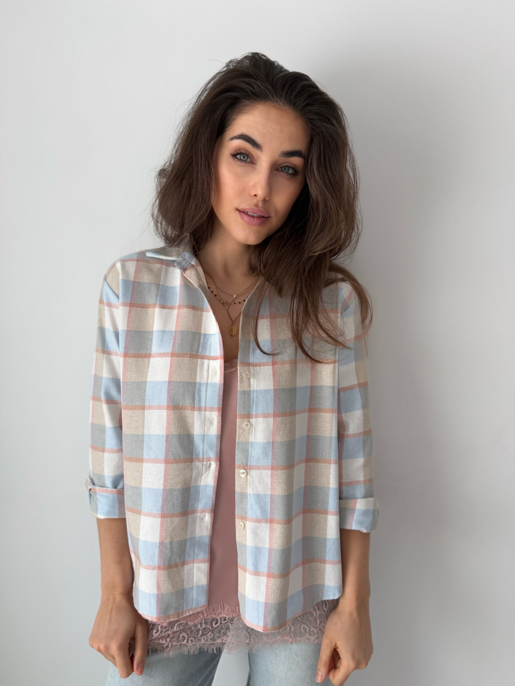 čtverečkovaná košile, trendy košile, béžová košile, světlá košile, košile