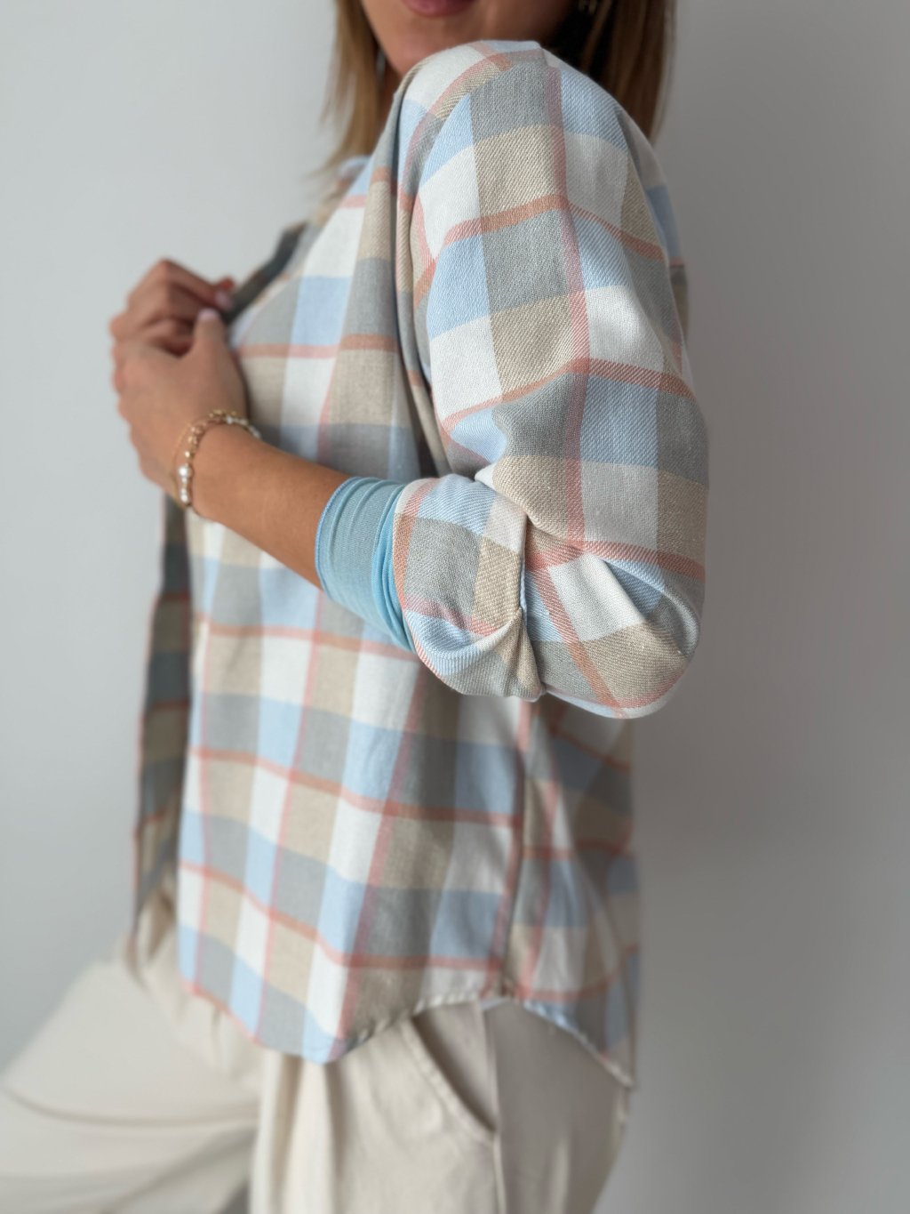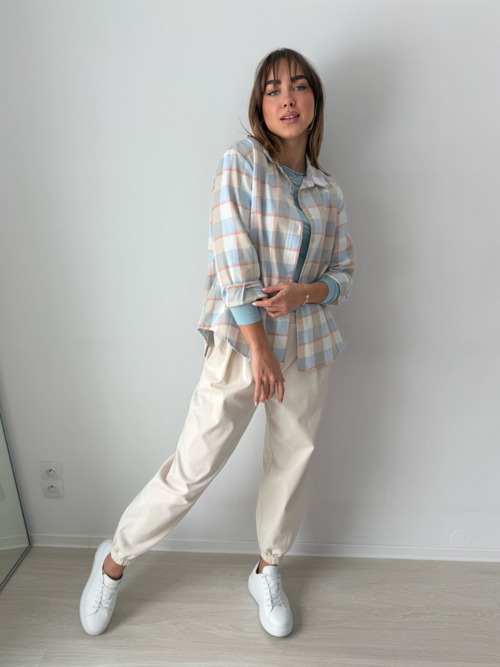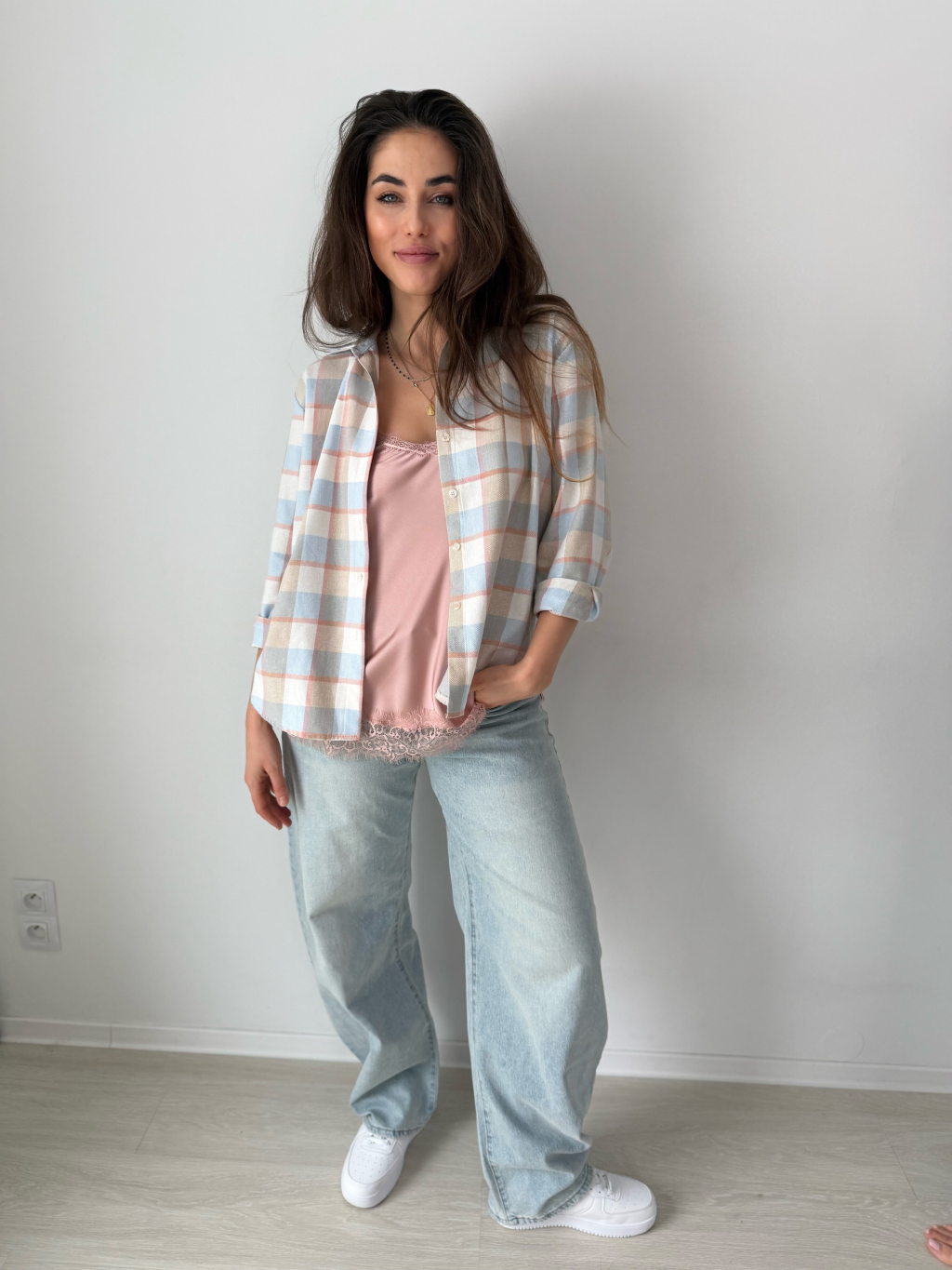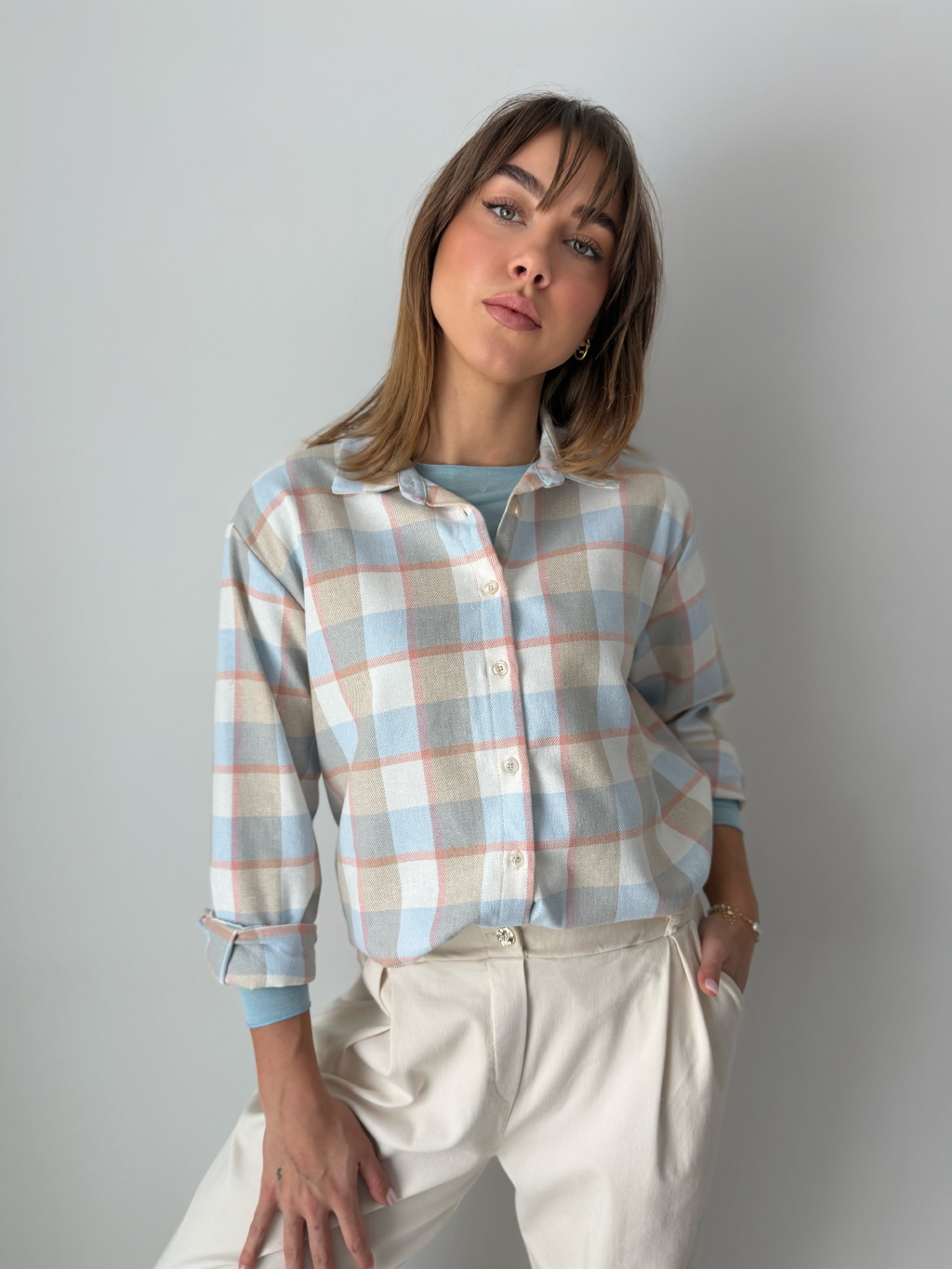 čtverečkovaná košile, trendy košile, béžová košile, světlá košile, košile