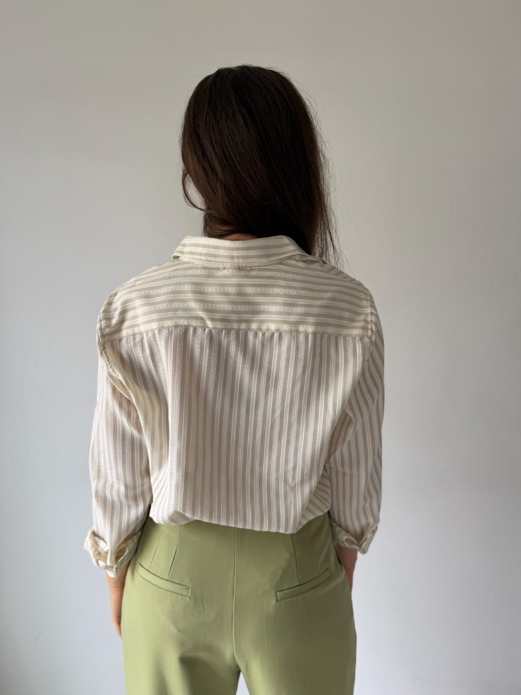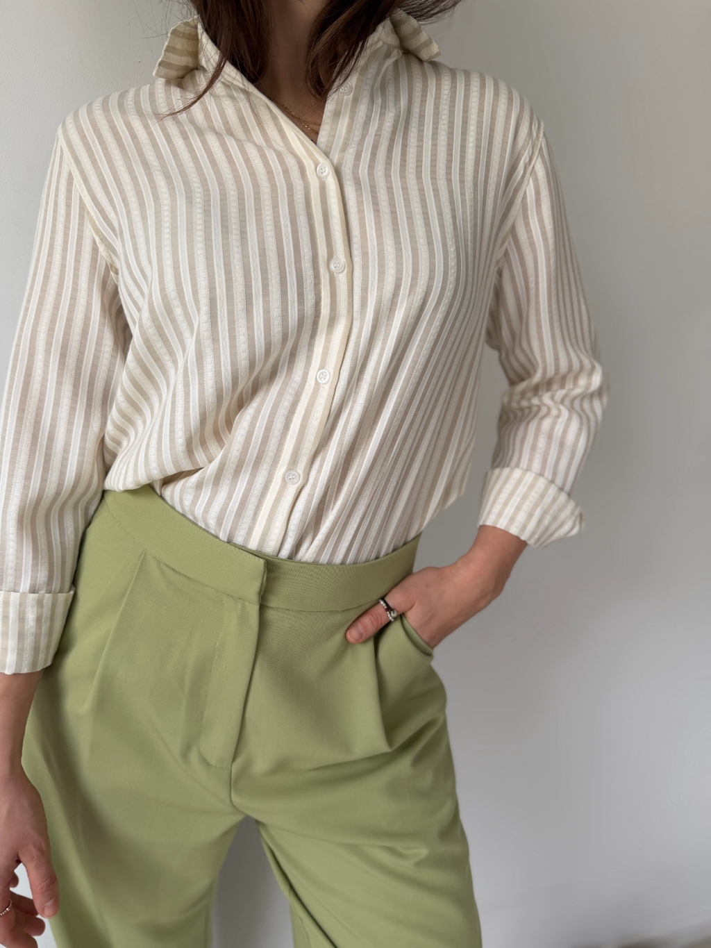 Bavlněná košile s proužky. Košile má volný střih. Zapínání na knoflíčky, rukávy lze také zapnout a nosit jako tříčtvrteční.