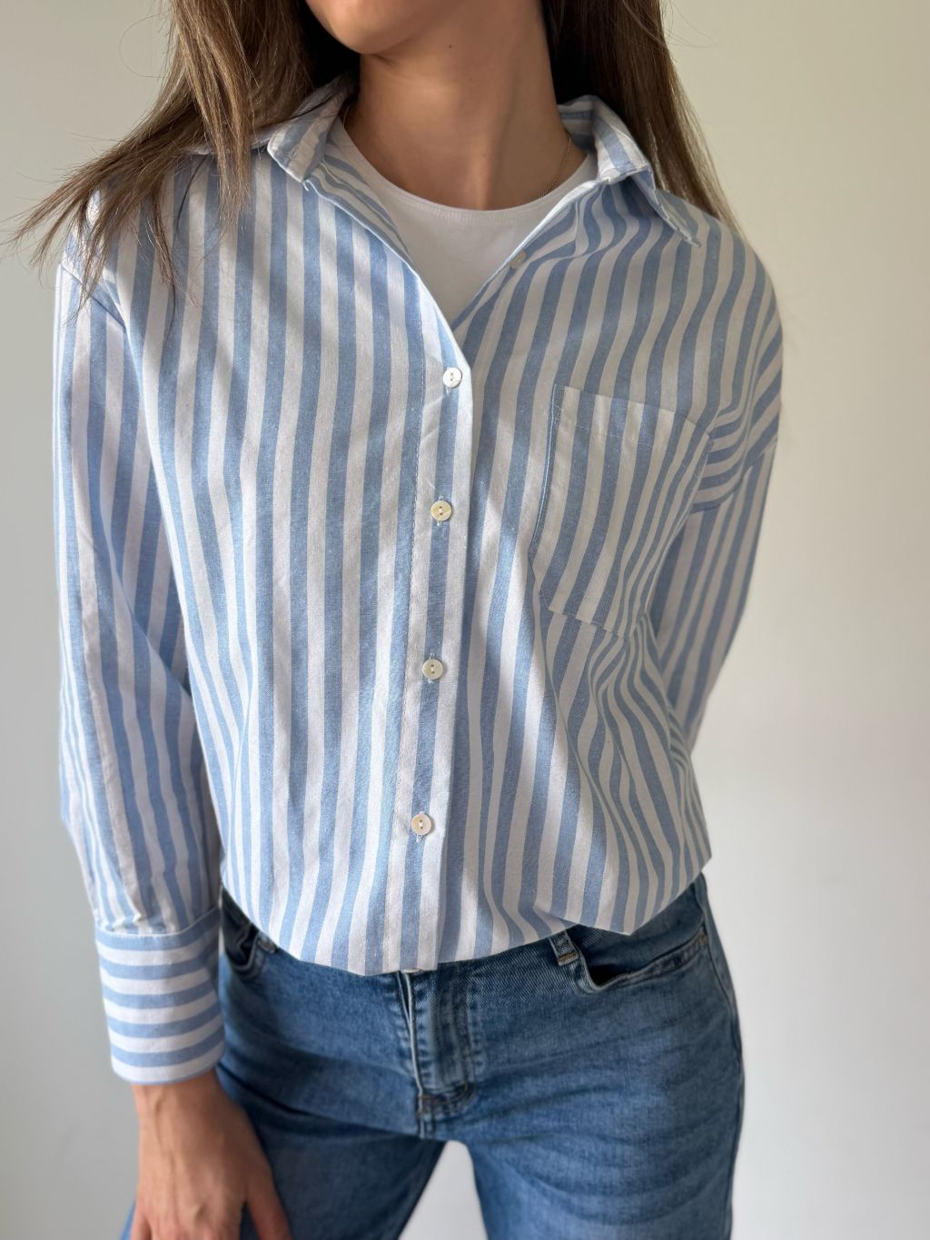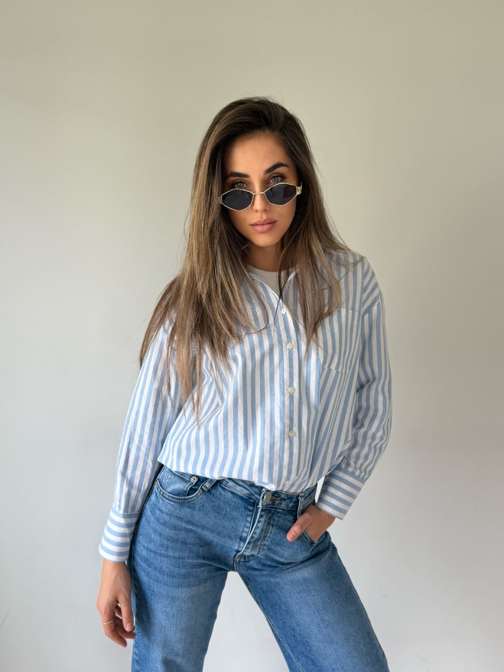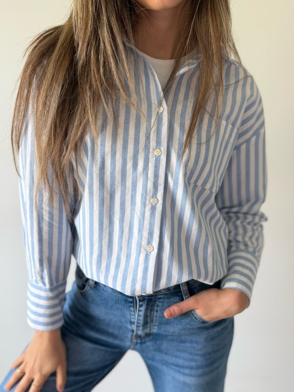 Bavlněná pruhovaná košile se zapínáním na knoflík.