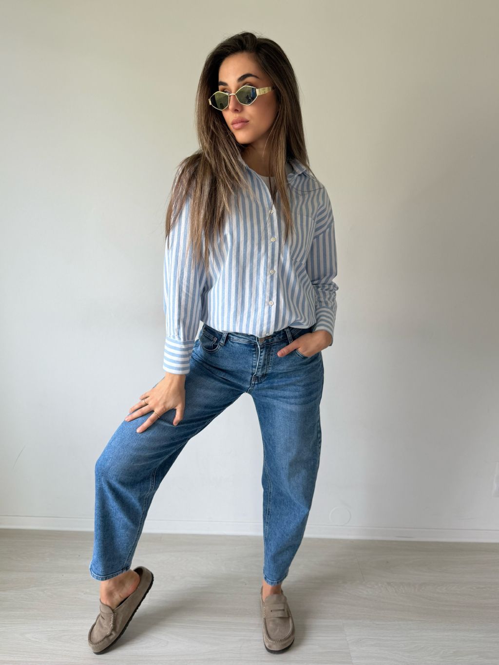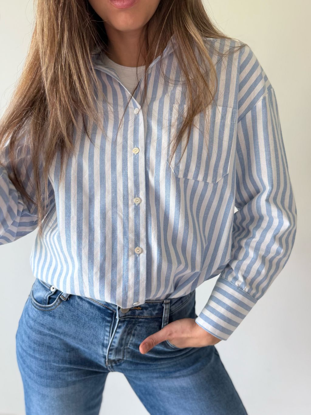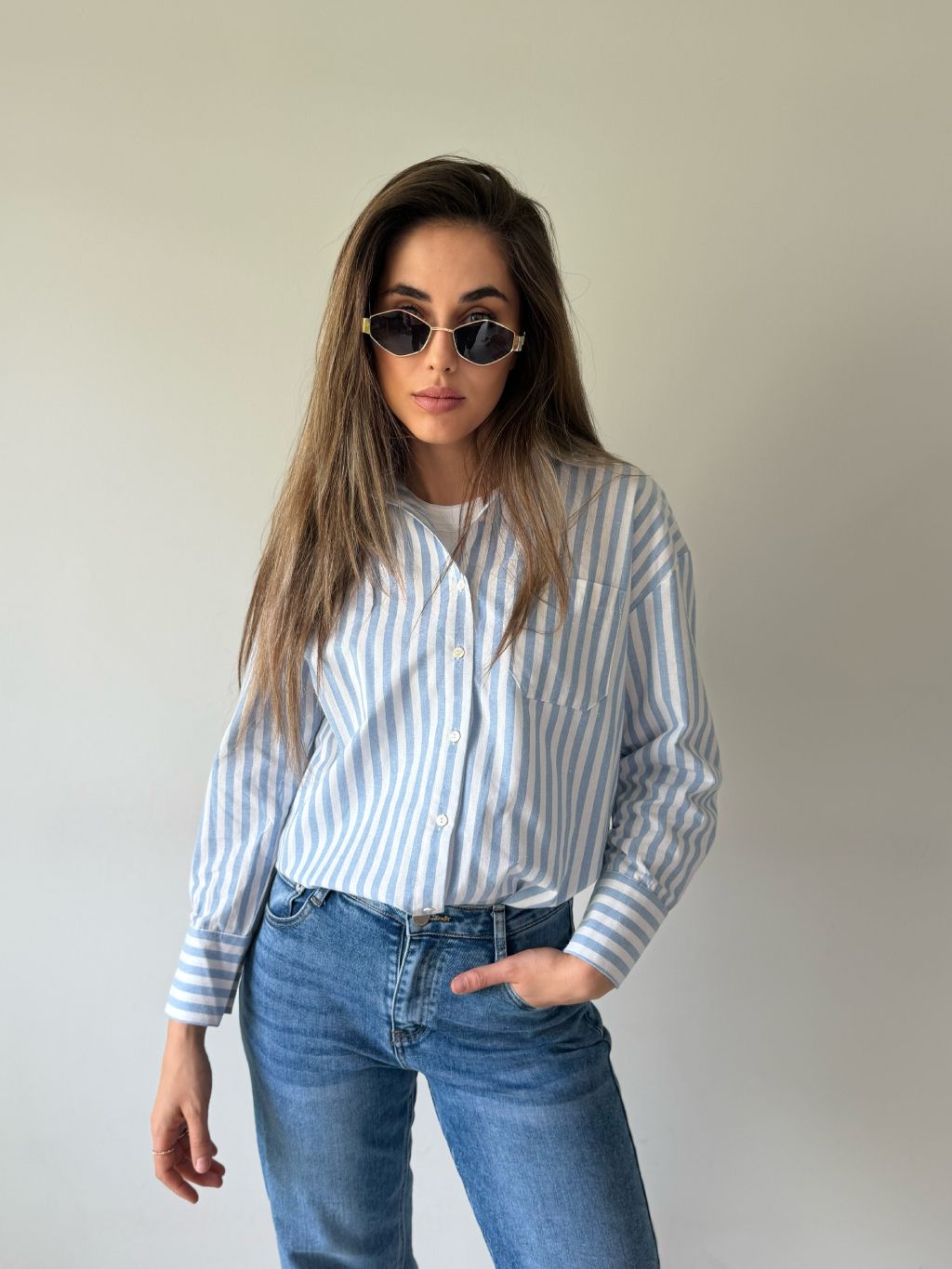Bavlněná pruhovaná košile se zapínáním na knoflík.