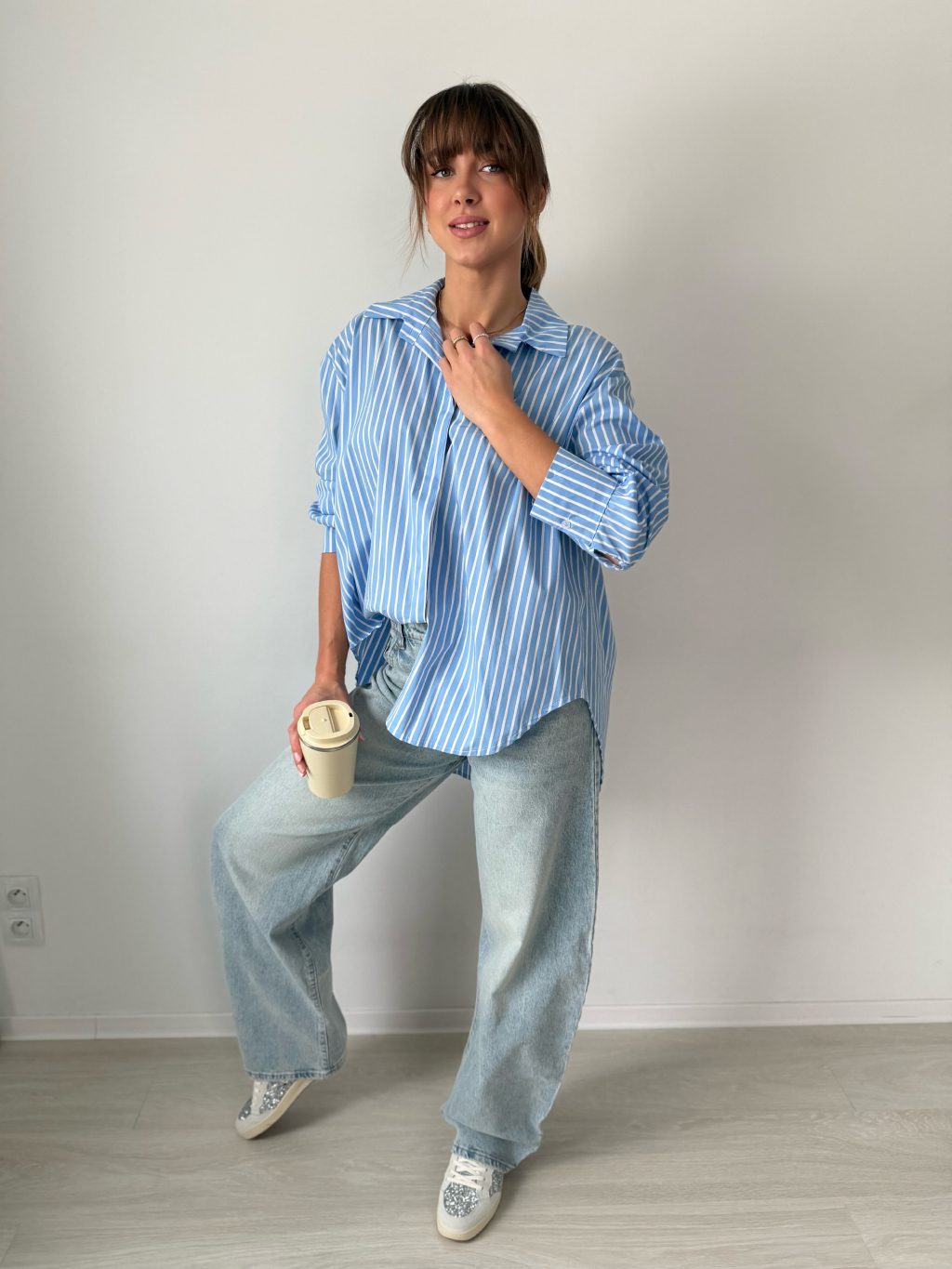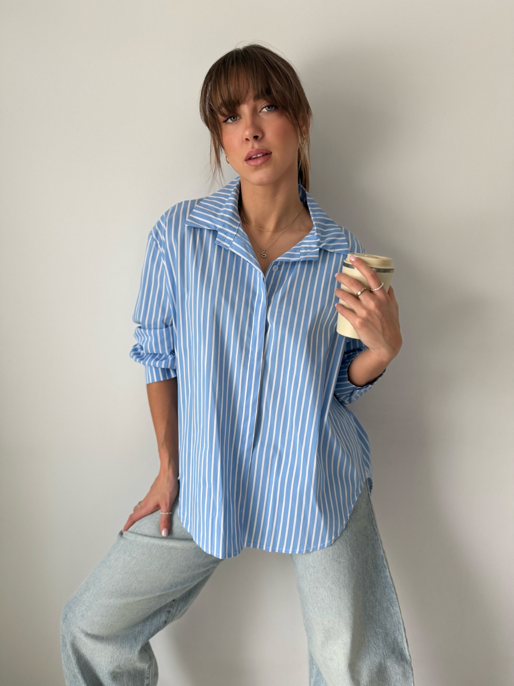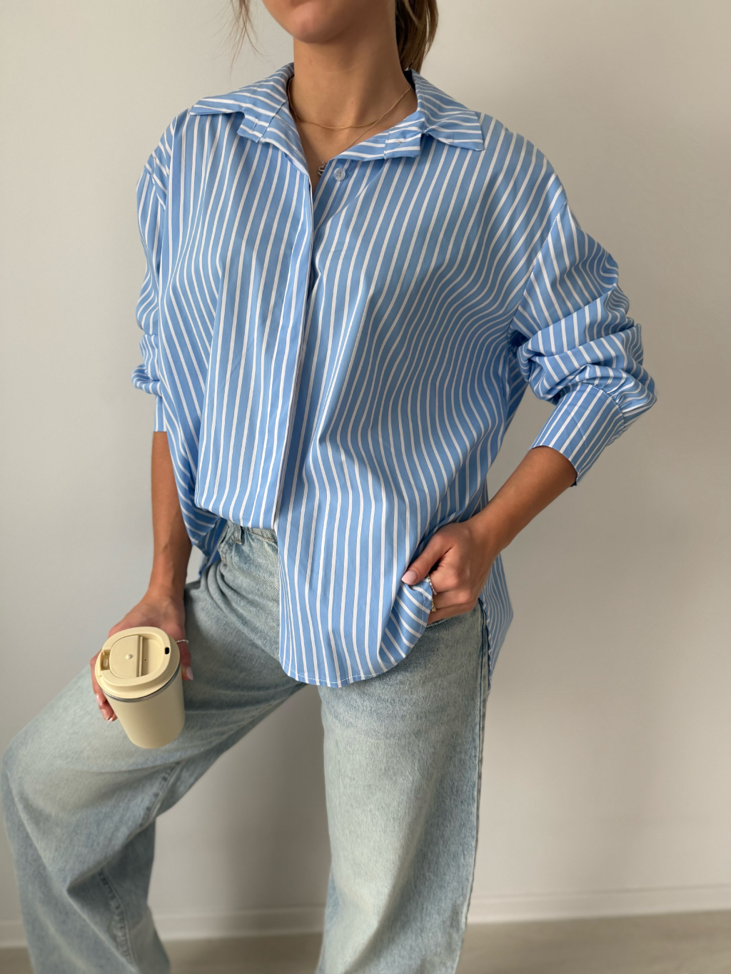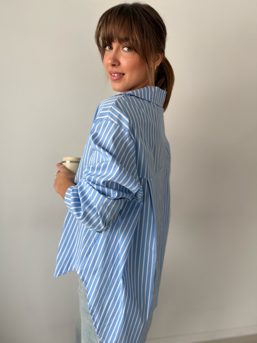 pruhovaná košile, delší košile, modrobílá košile, košile