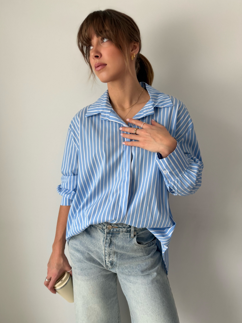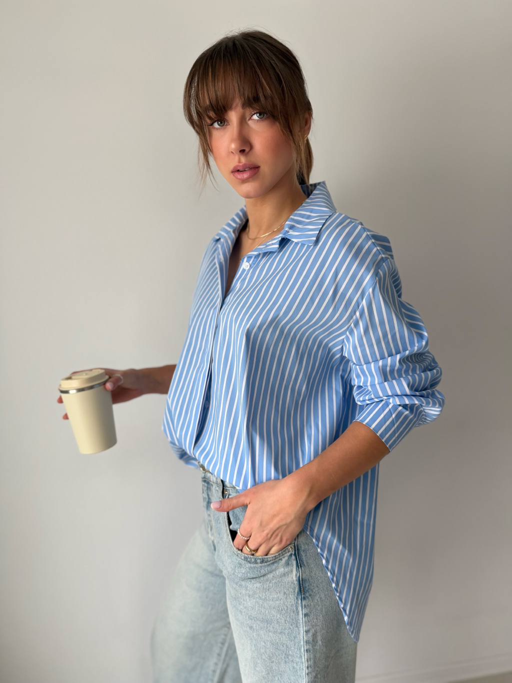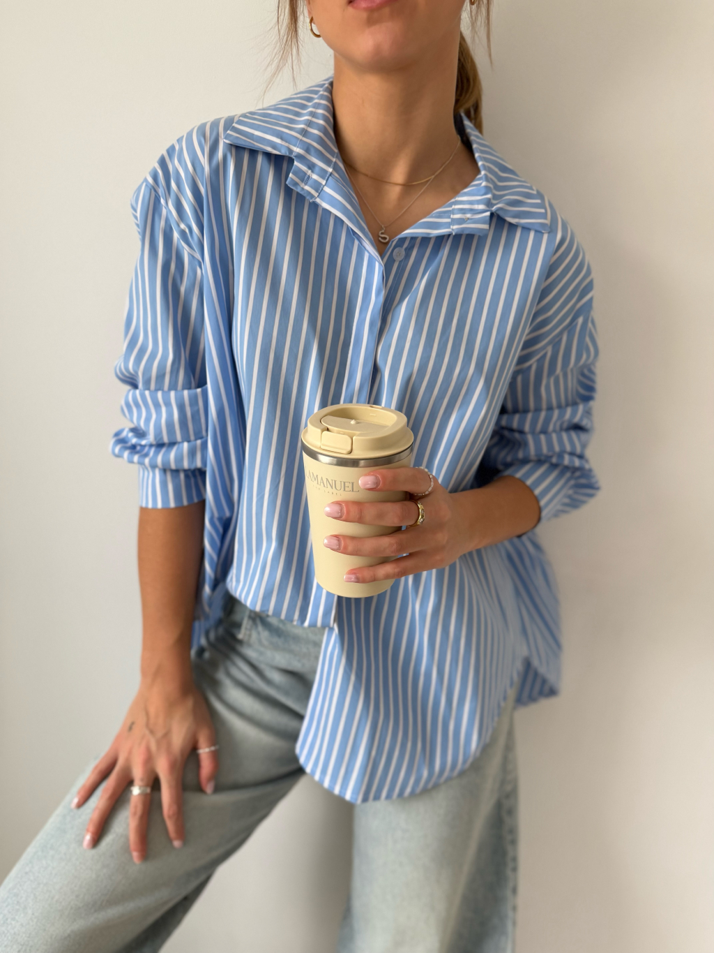 pruhovaná košile, delší košile, modrobílá košile, košile