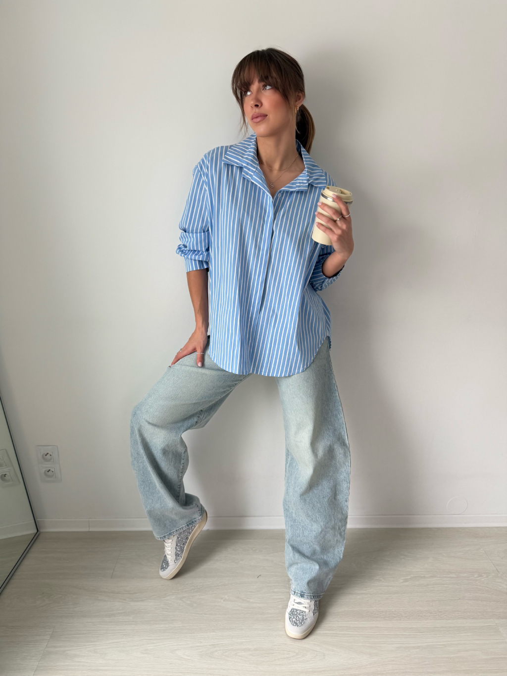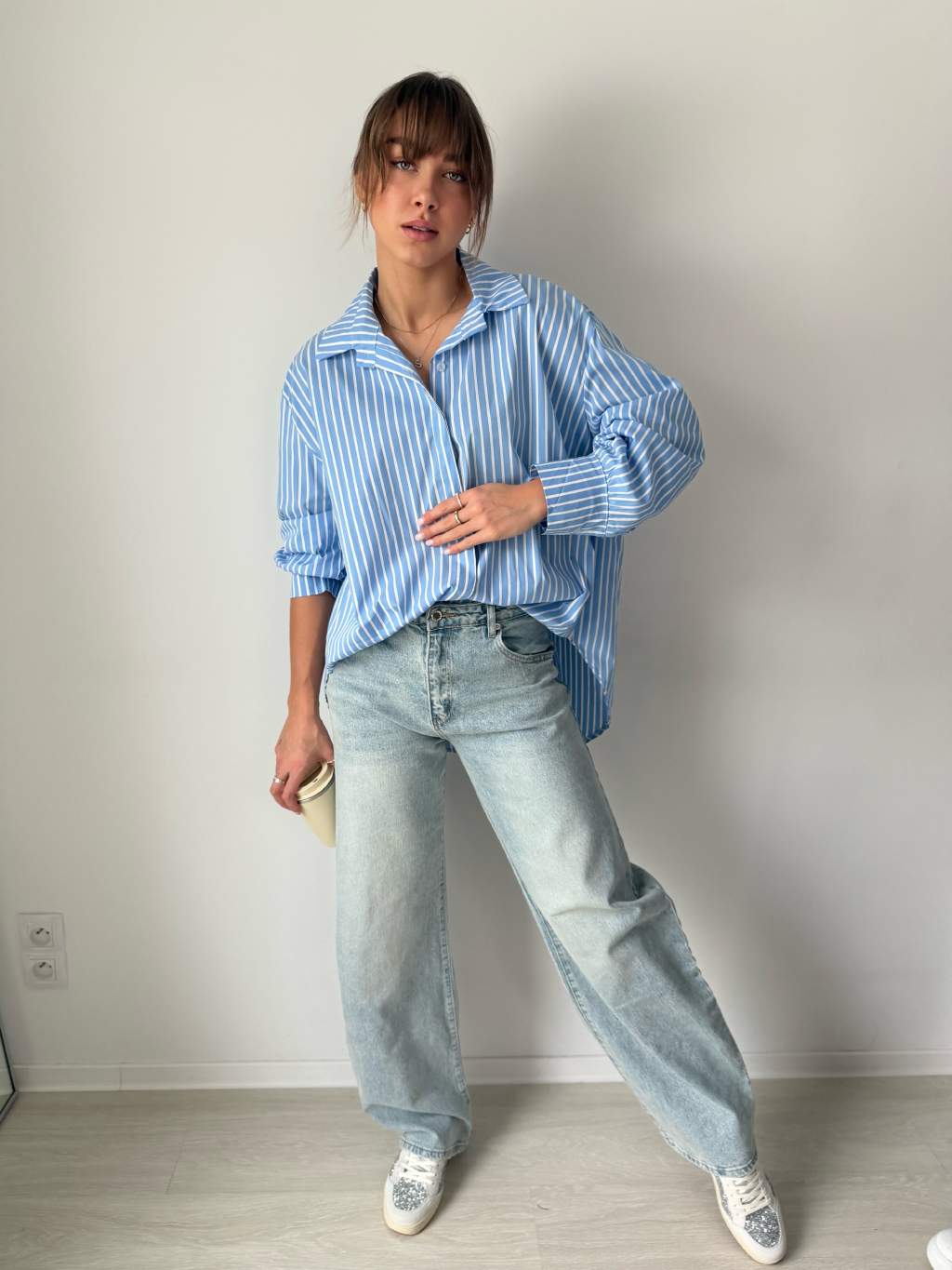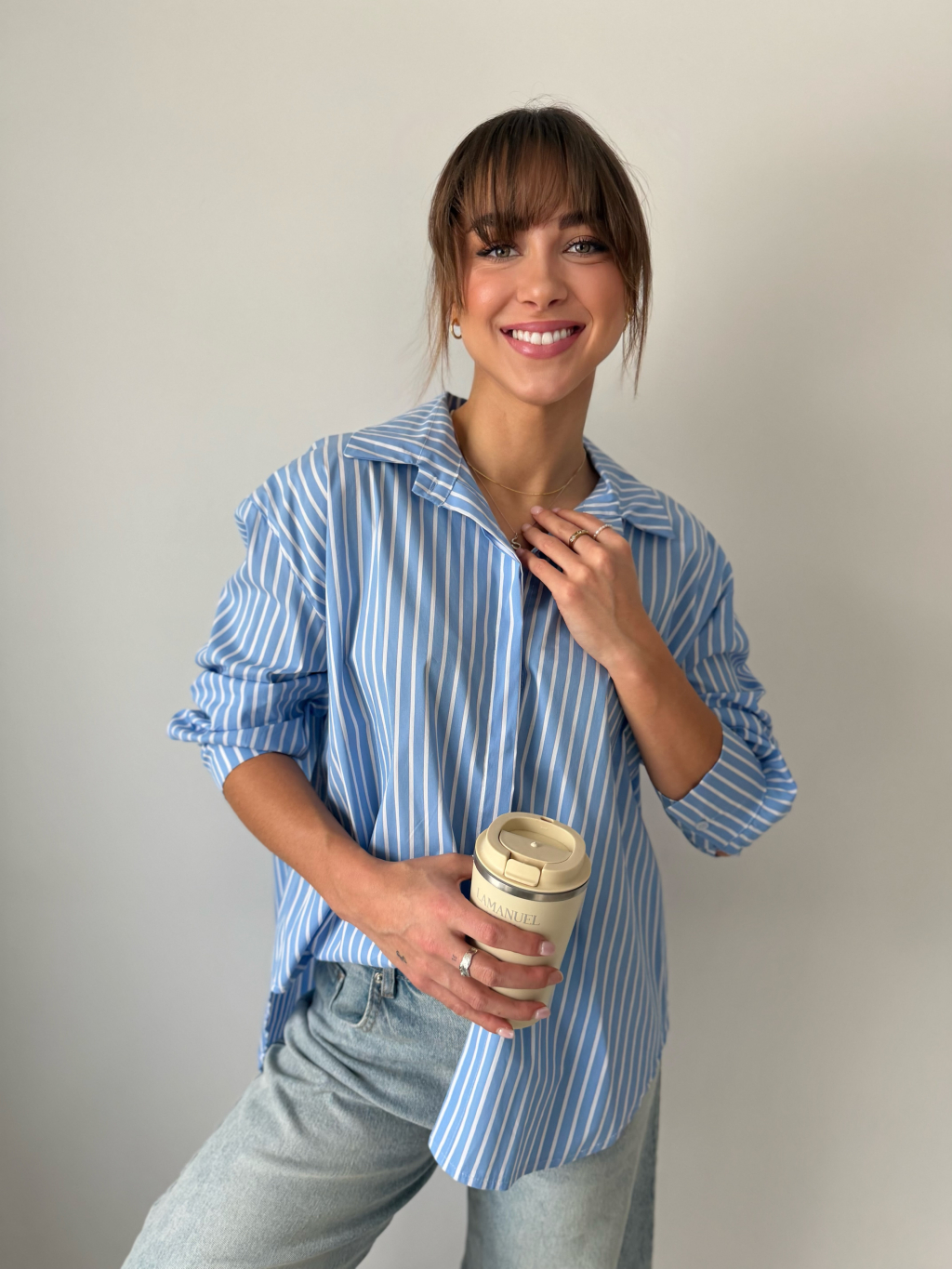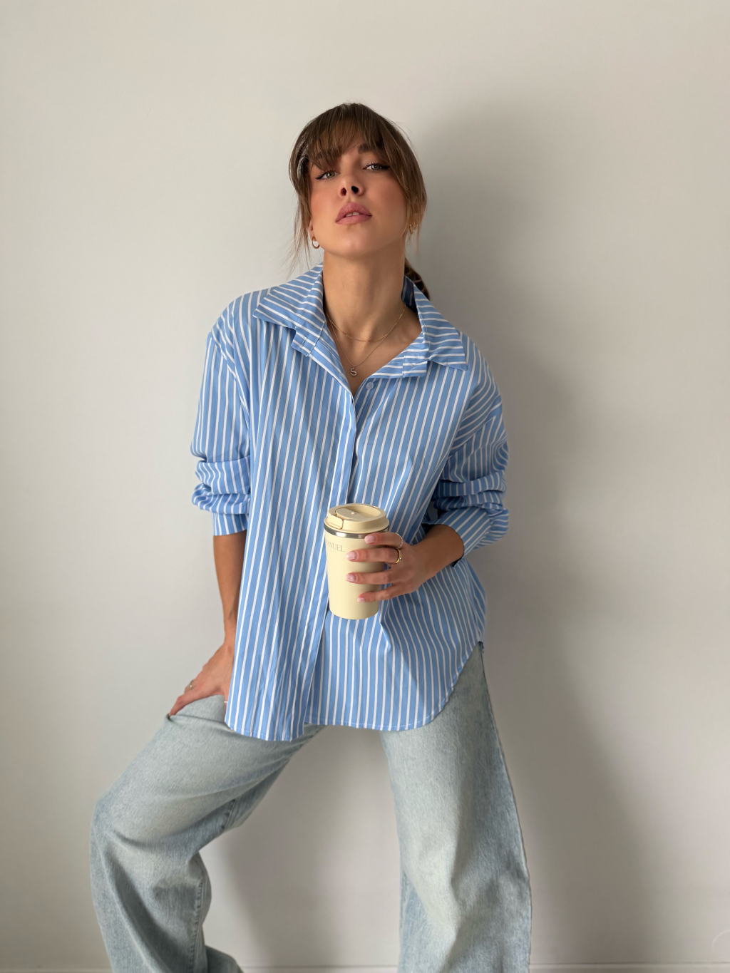pruhovaná košile, delší košile, modrobílá košile, košile