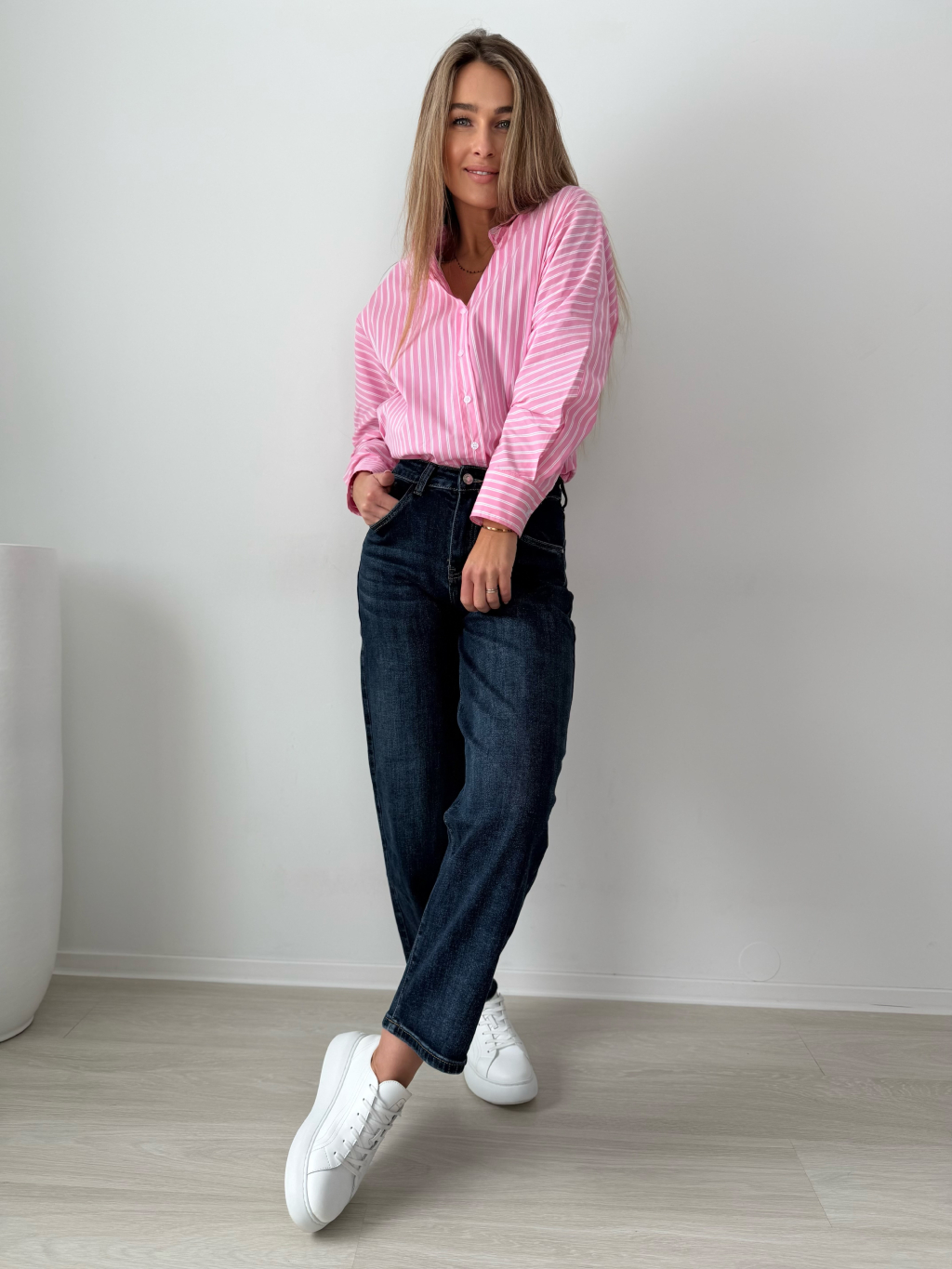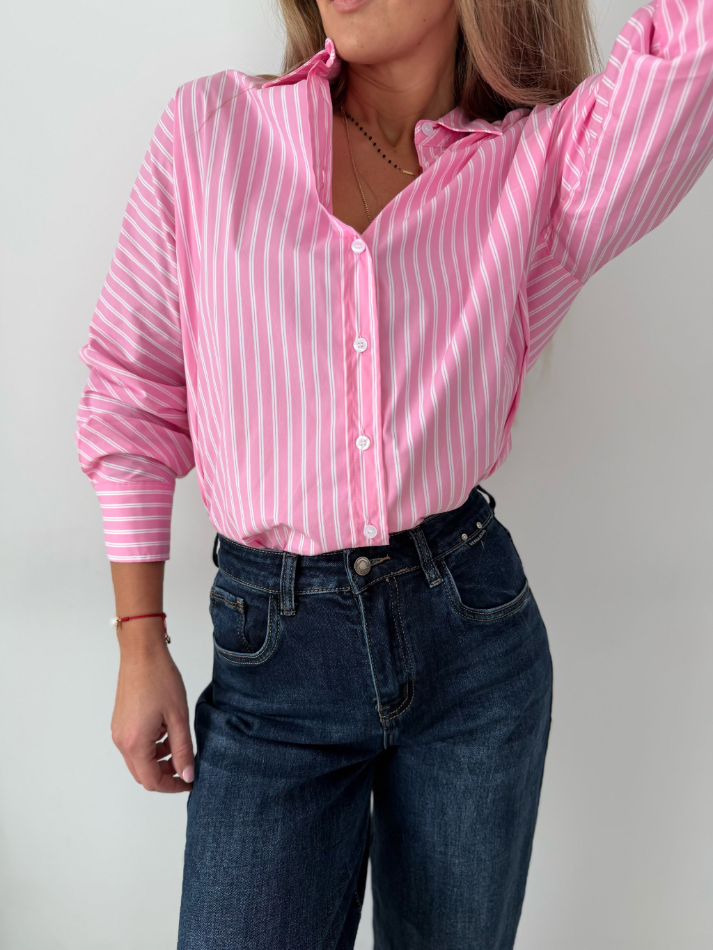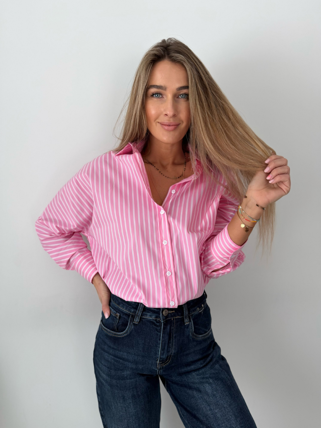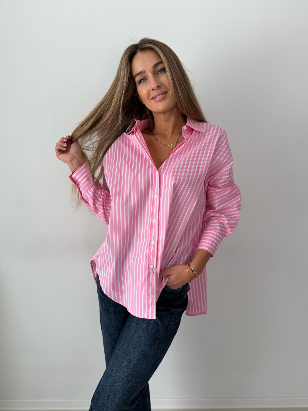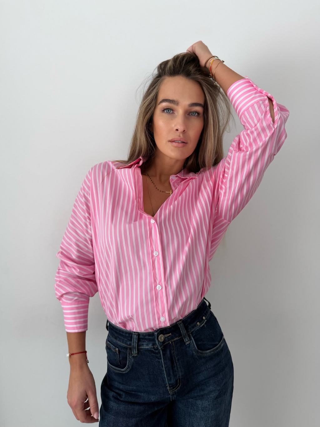 košile, pruhovaná košile, růžovobílá košile, volná, oversize, volná košile, pruhovaná