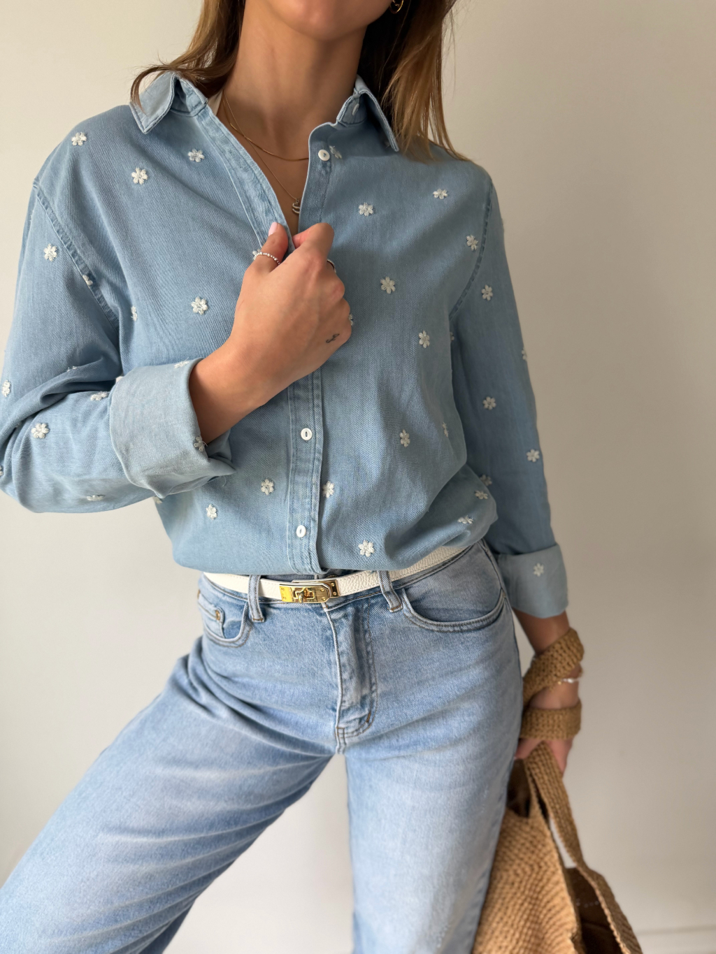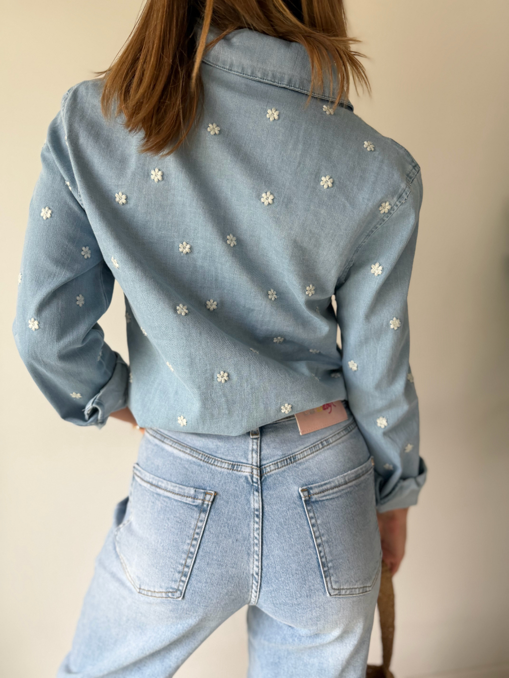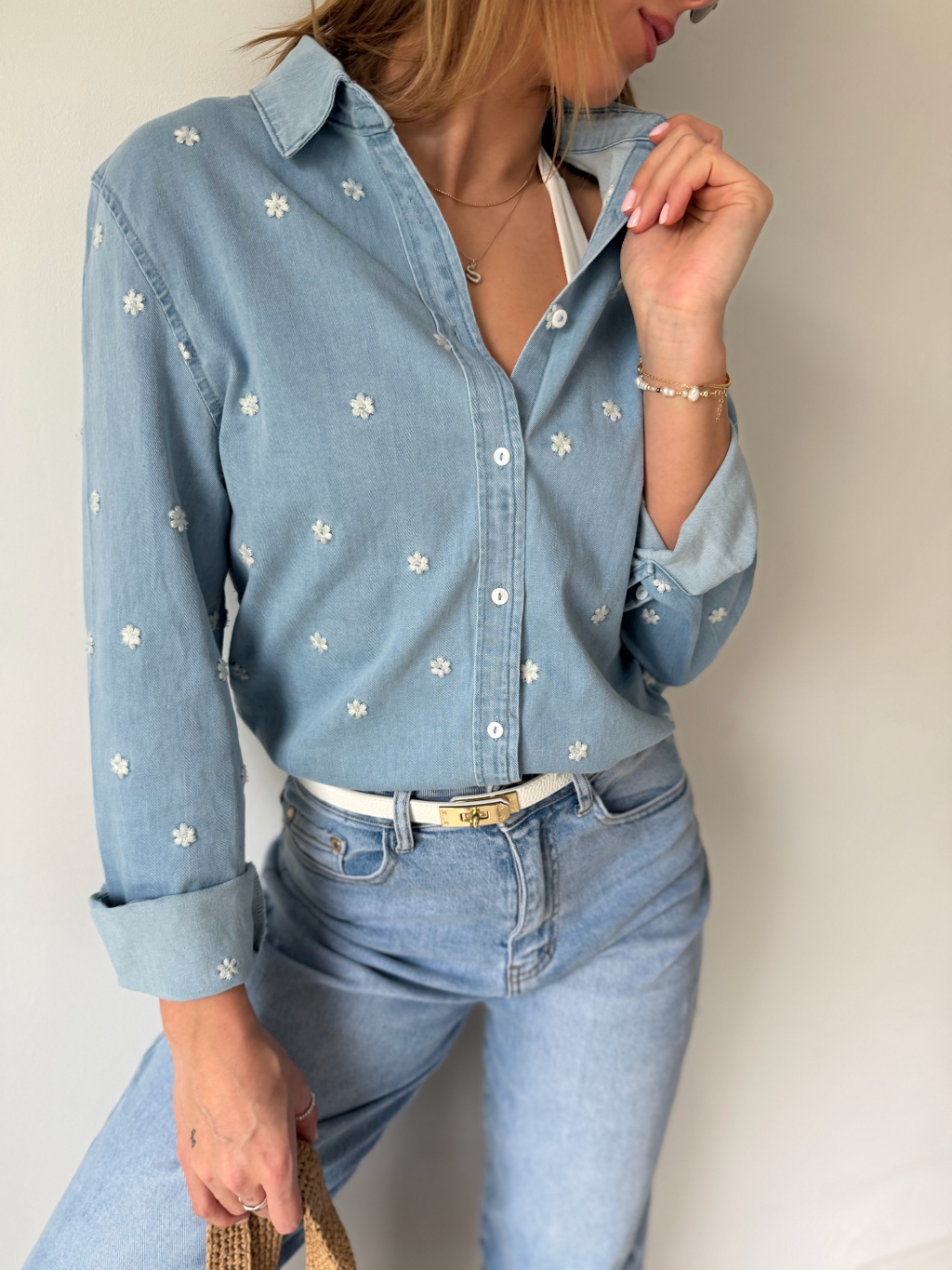 košile, riflová košile, košile s kytičkama, košile s vyšitím