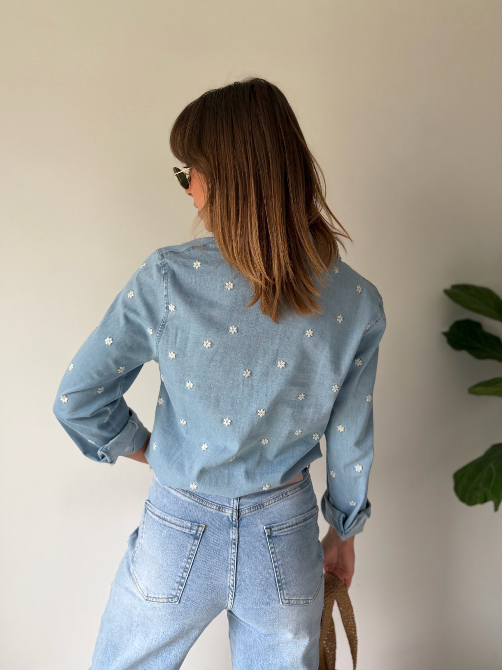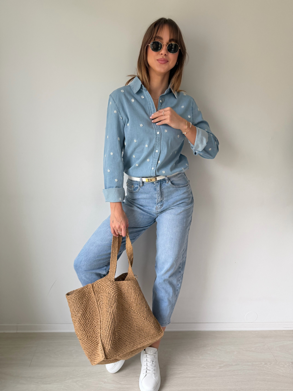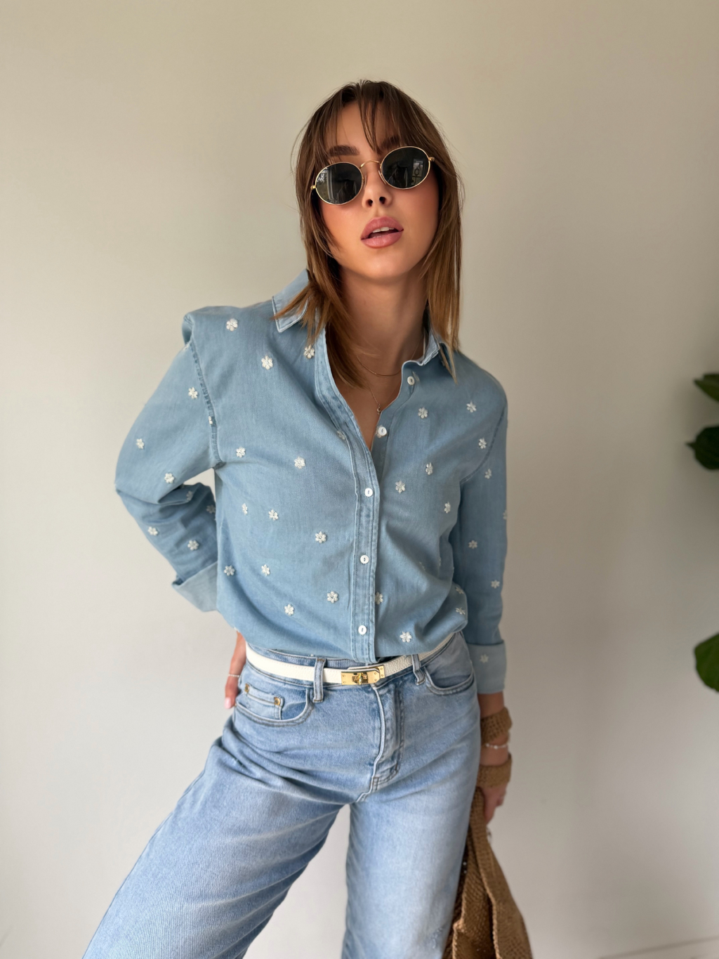 košile, riflová košile, košile s kytičkama, košile s vyšitím