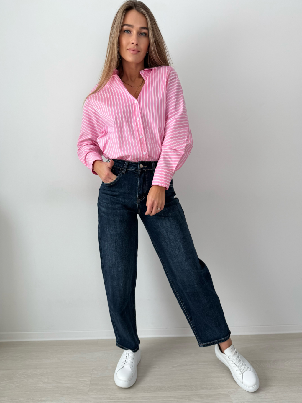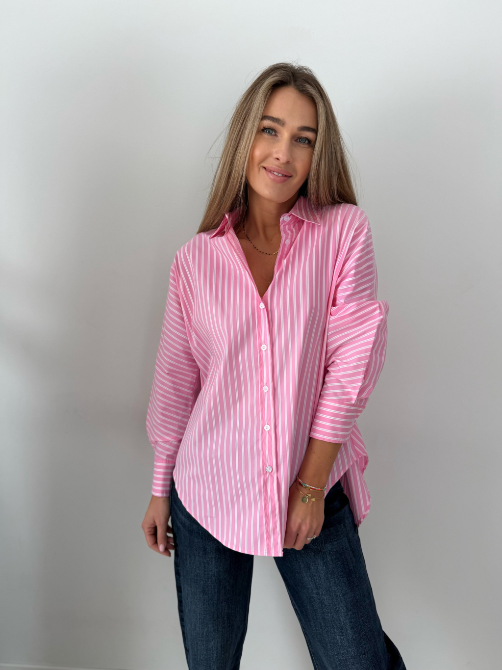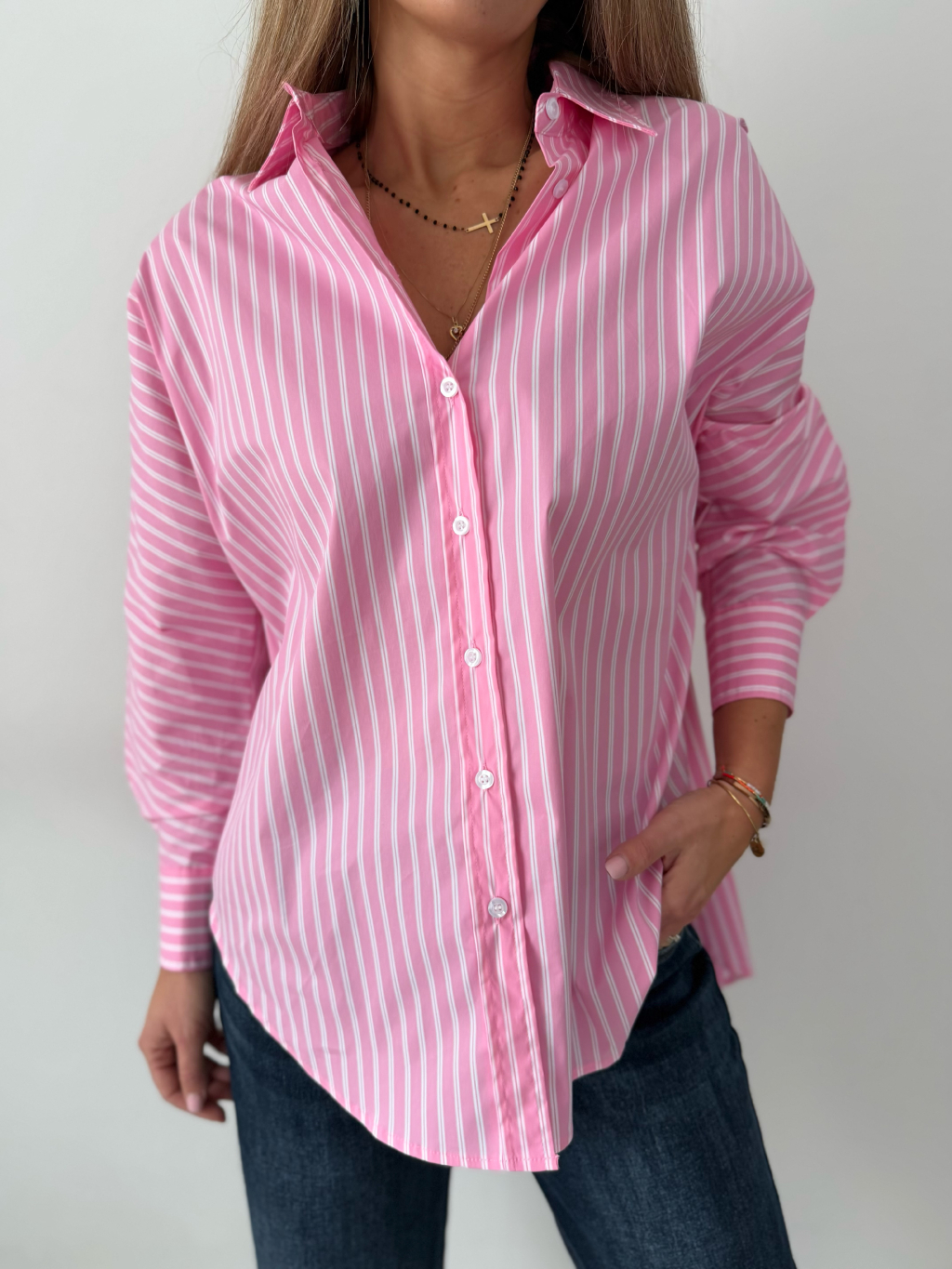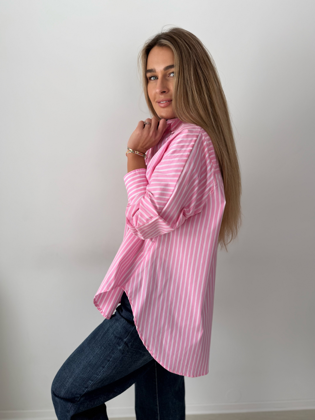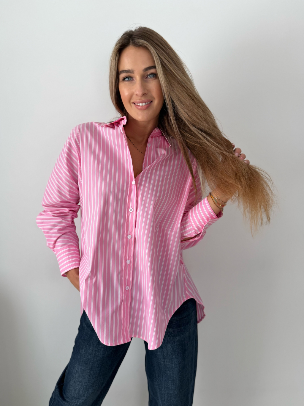 košile, pruhovaná košile, růžovobílá košile, volná, oversize, volná košile, pruhovaná