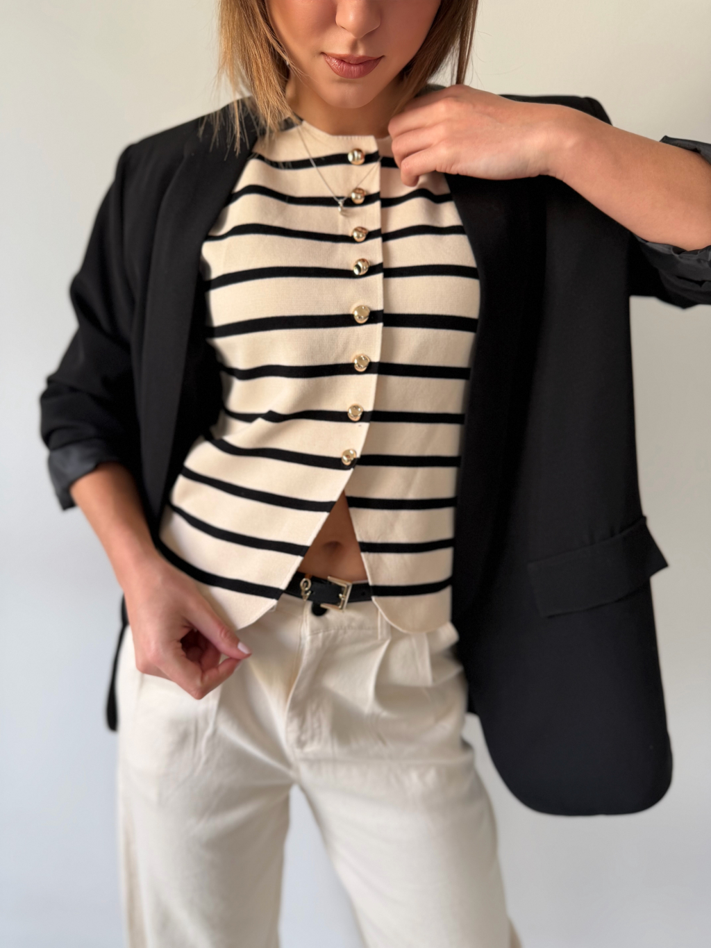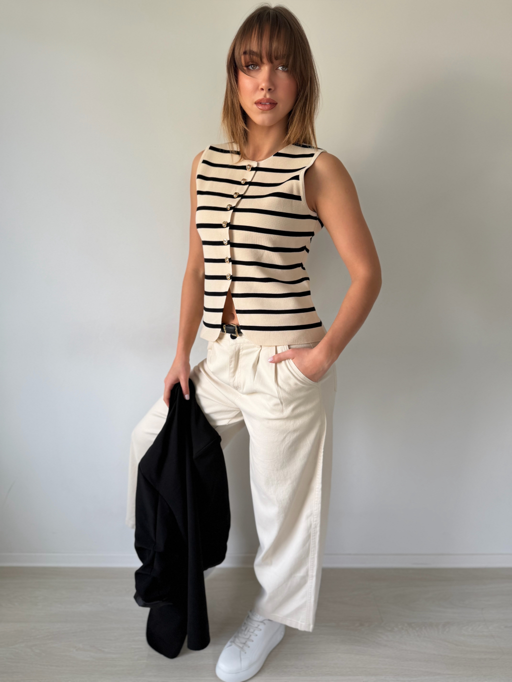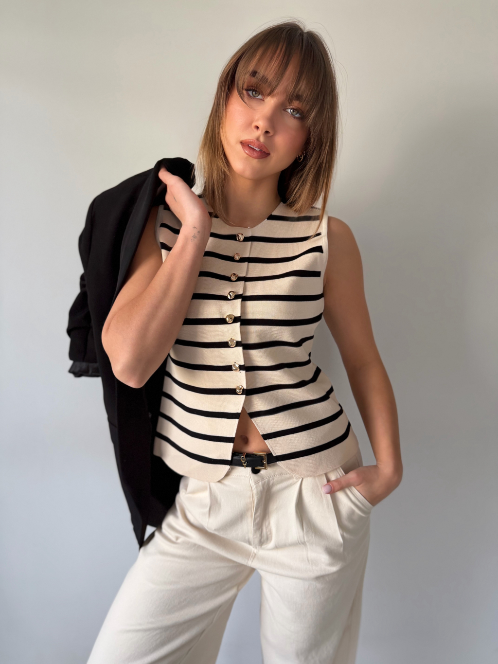Luxusní vestička Korr pruh krémová