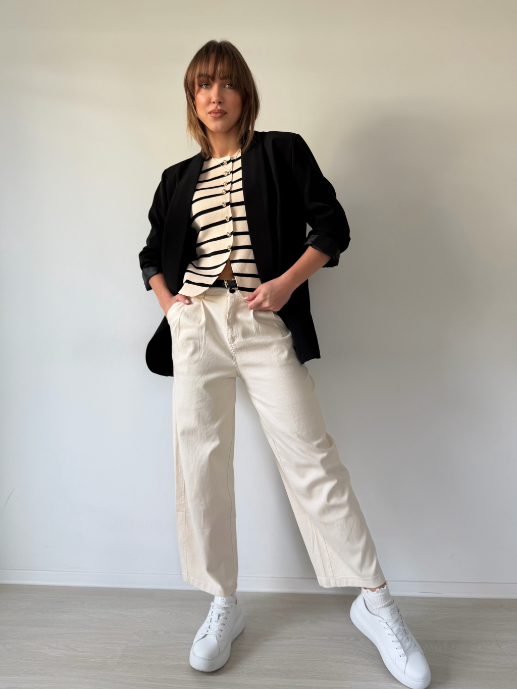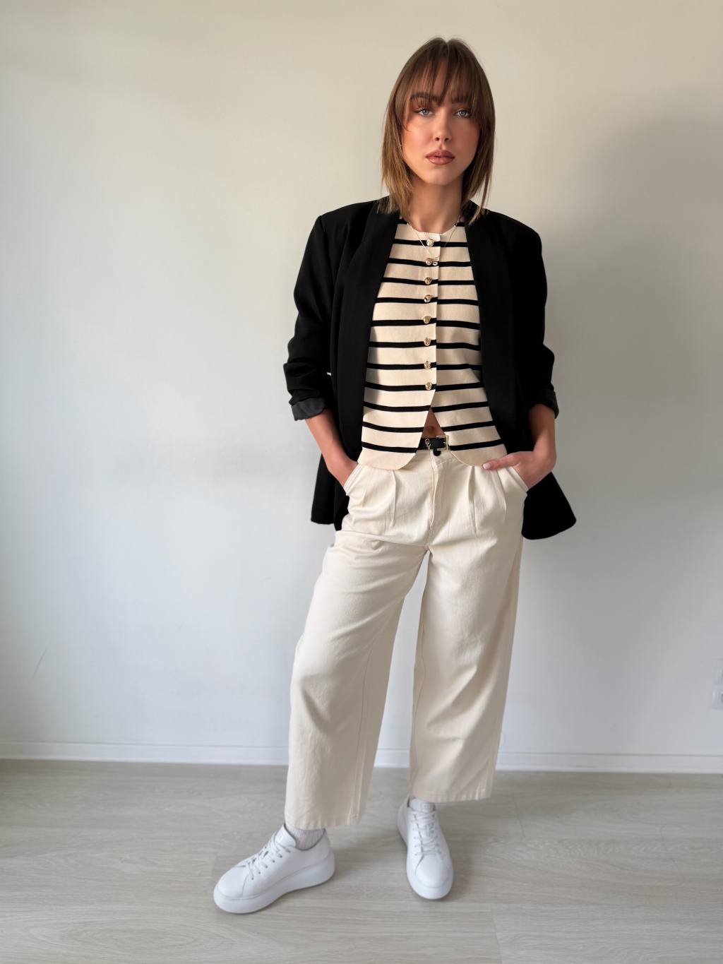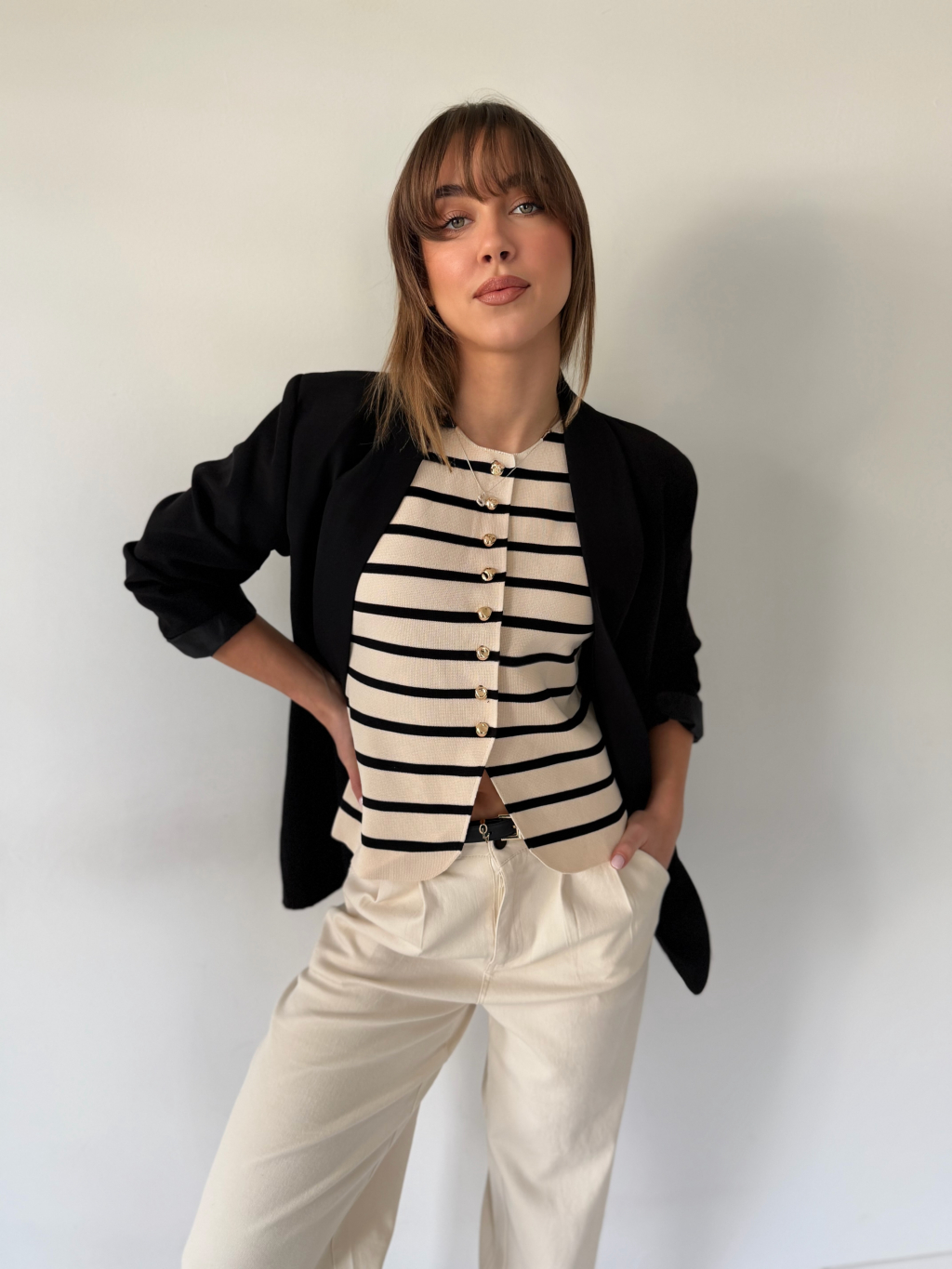Luxusní vestička Korr pruh krémová