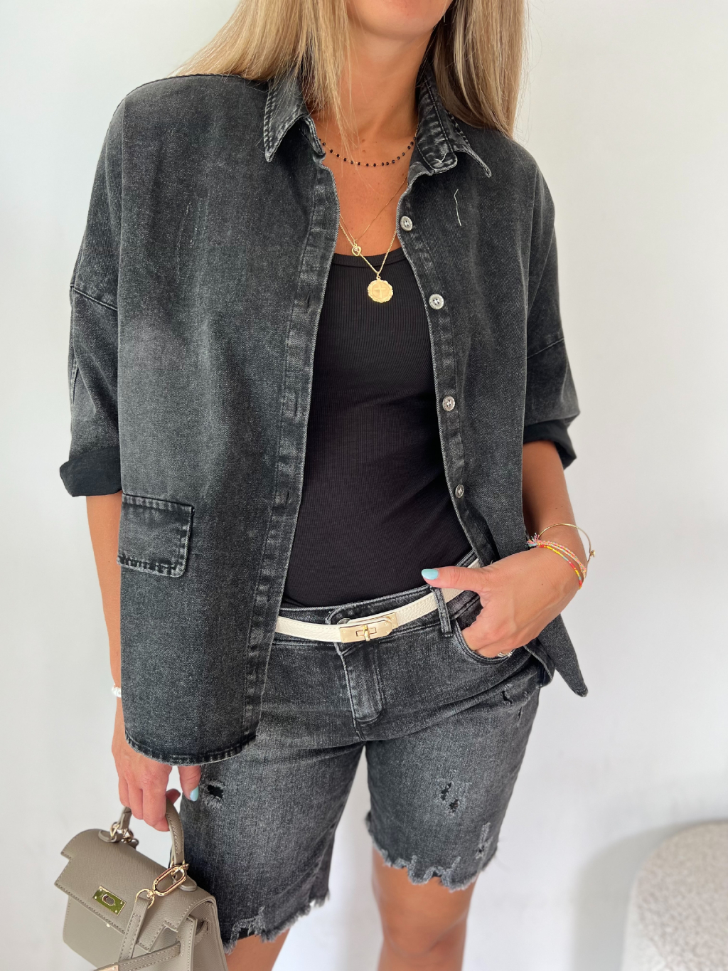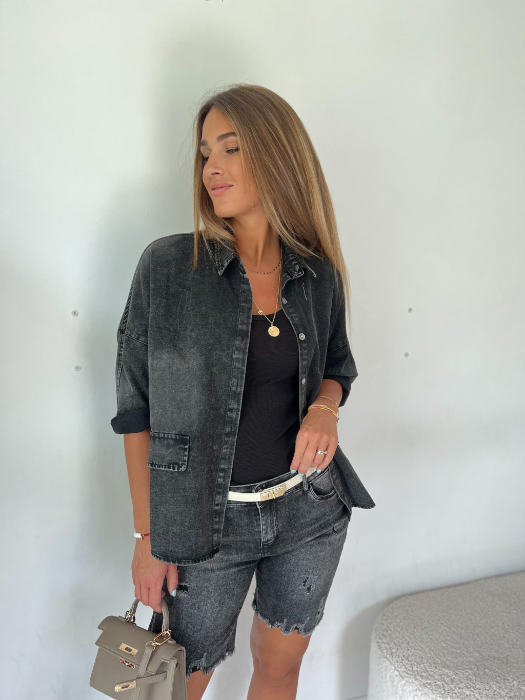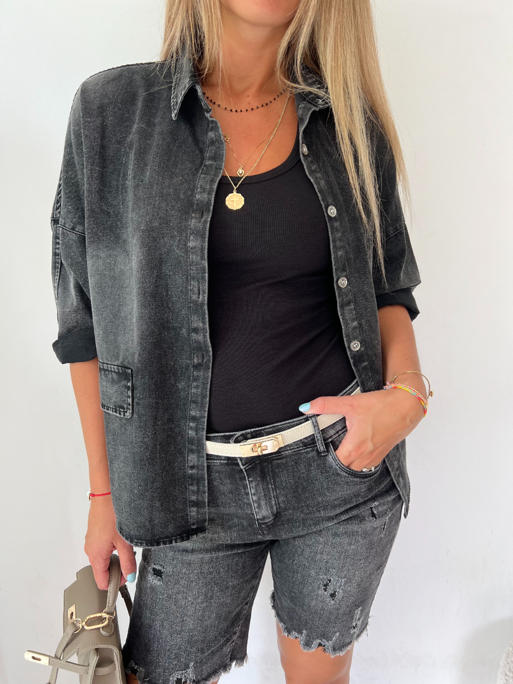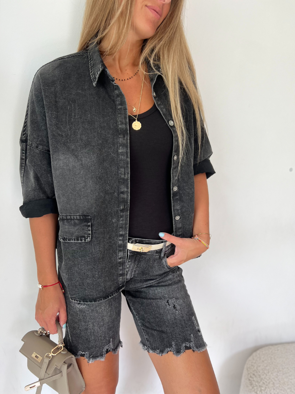 košile, s krátkým rukávem, bšedá košile, džínová košile, volná košile