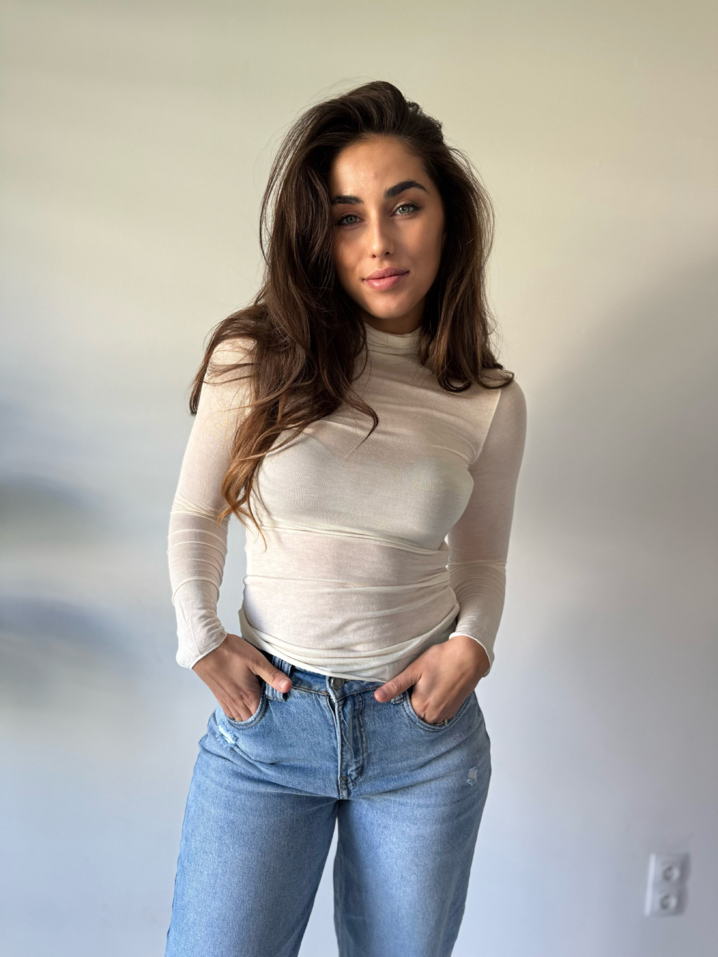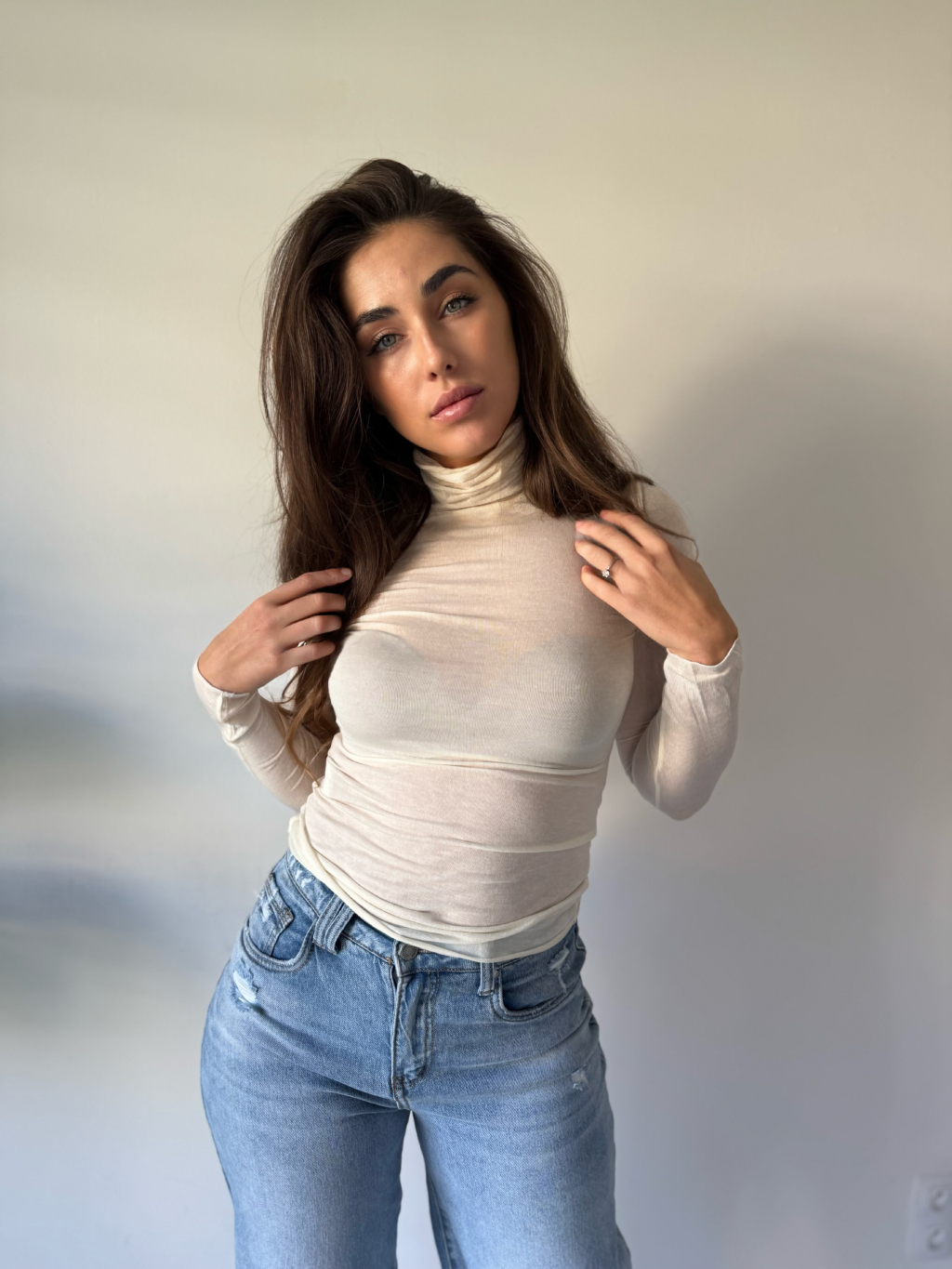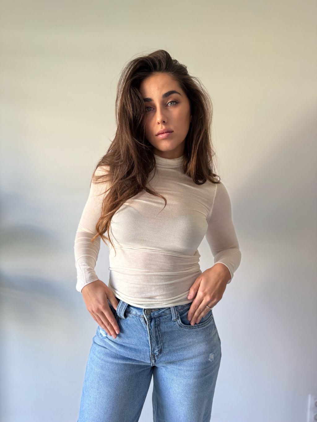Naše modelka měří 173 cm, běžně obléká vel. S