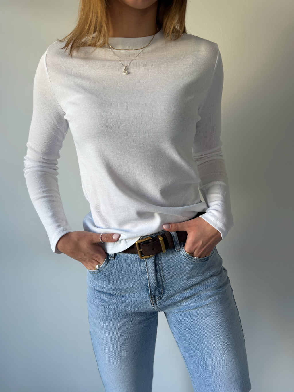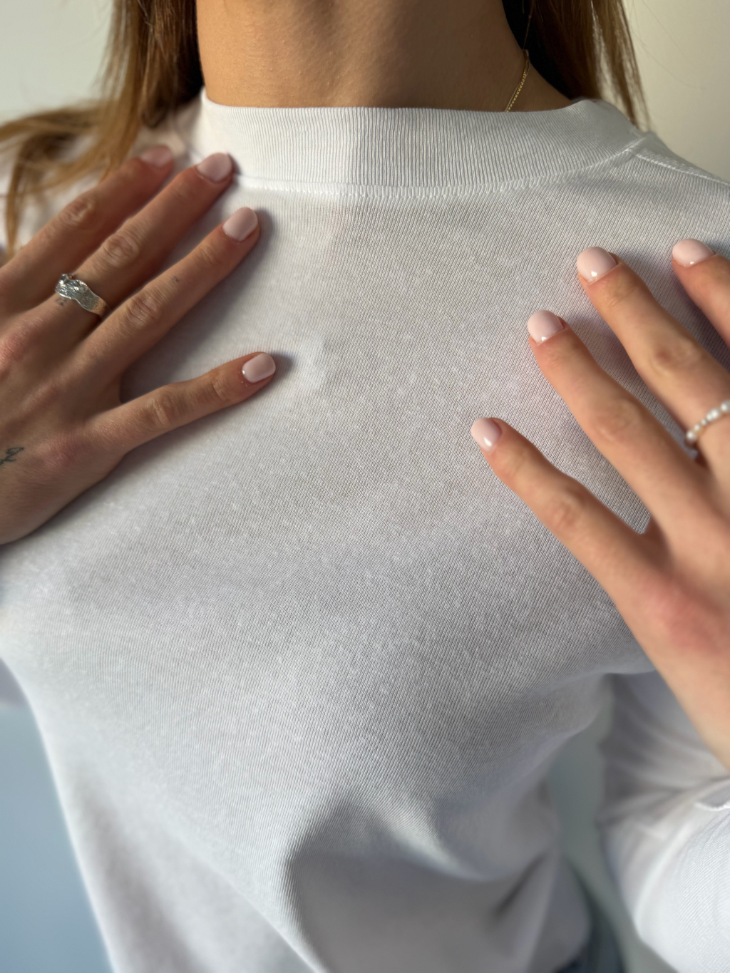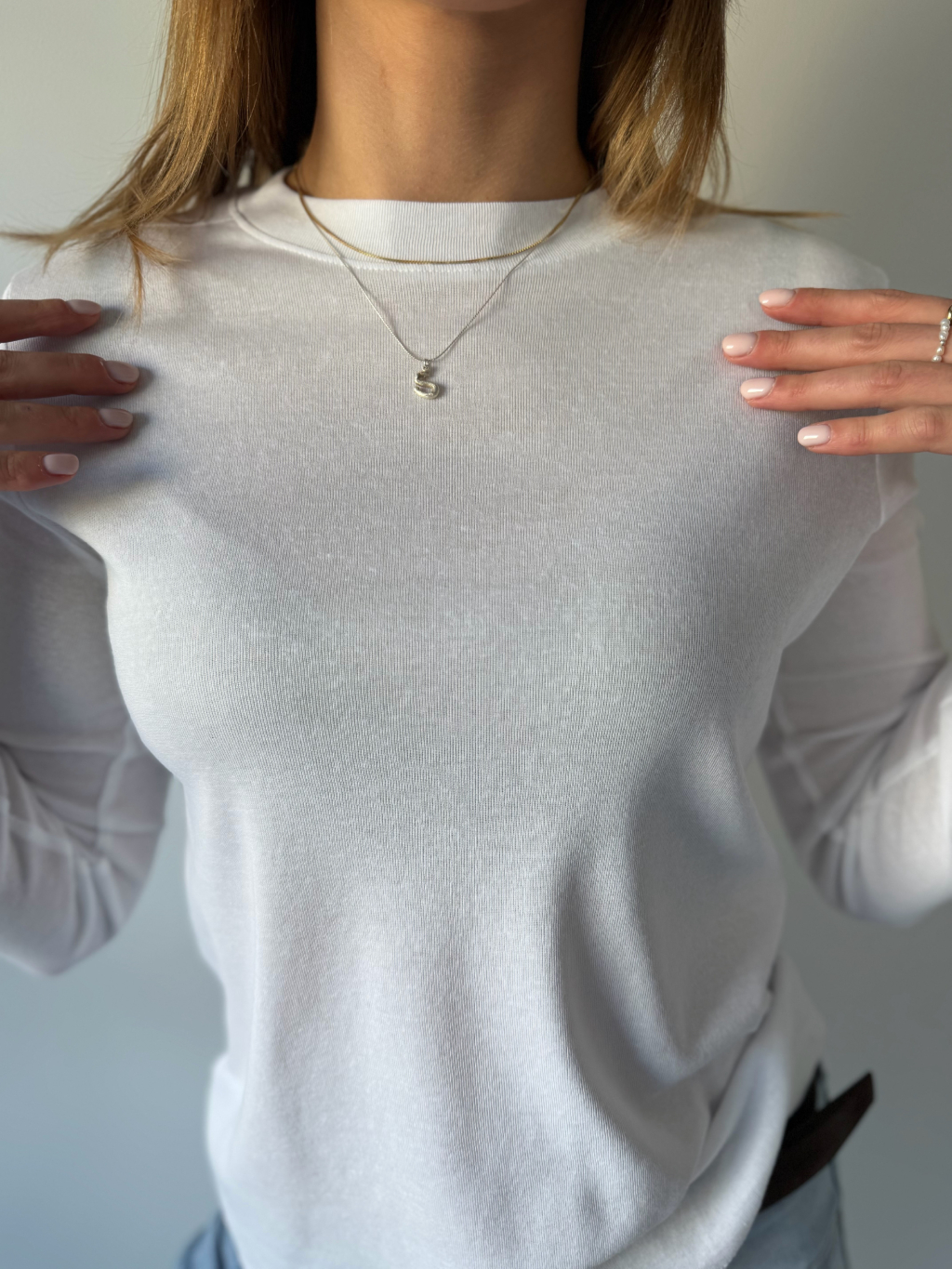 Bavlněné triko s dlouhým rukávem. Vzadu za krkem přišitý látkový trojúhelník.