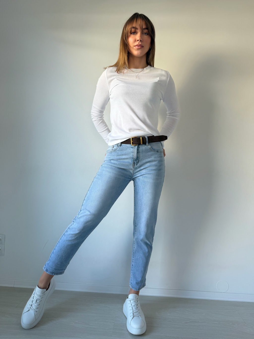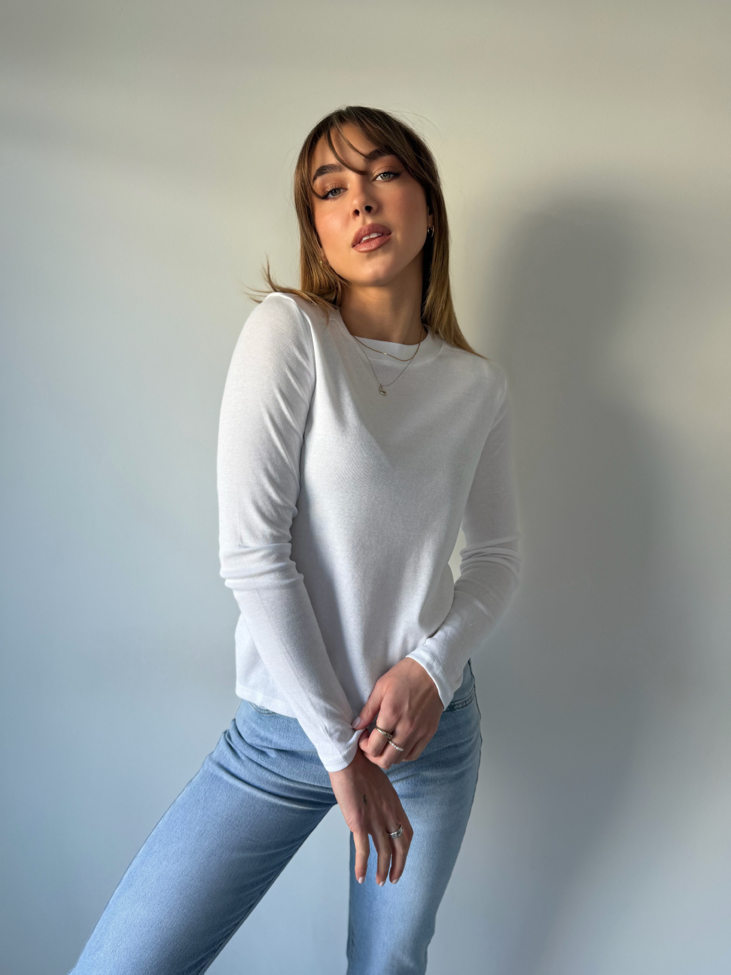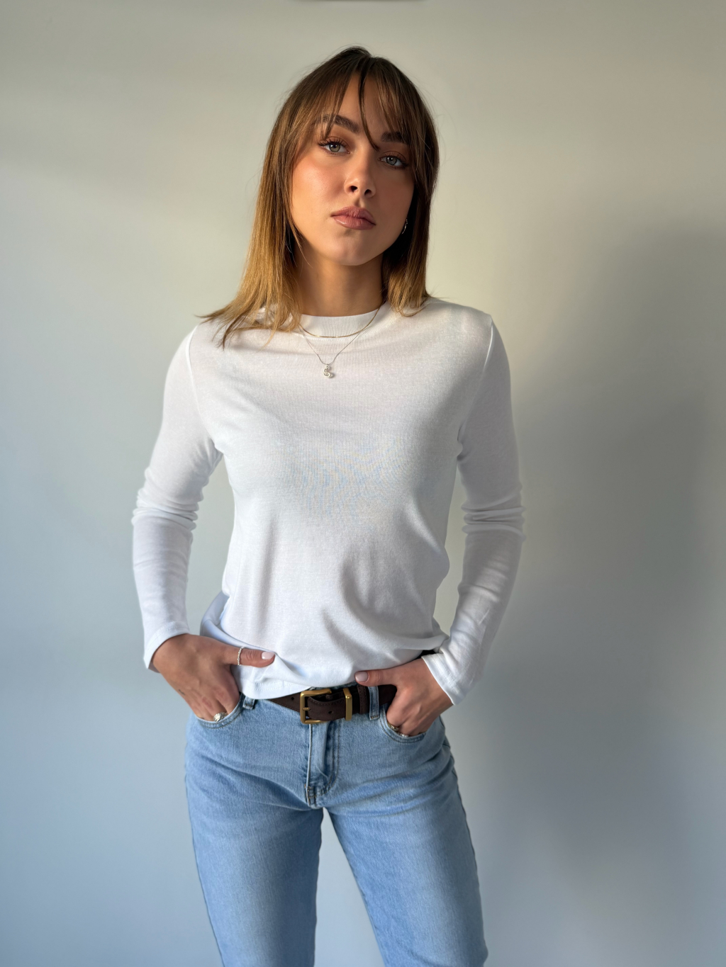 Bavlněné triko s dlouhým rukávem. Vzadu za krkem přišitý látkový trojúhelník.
