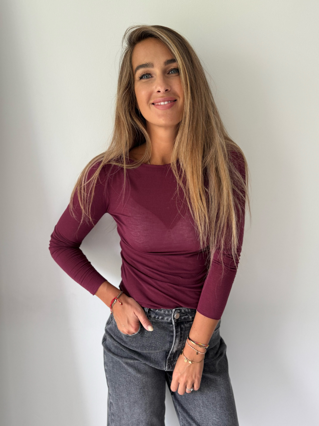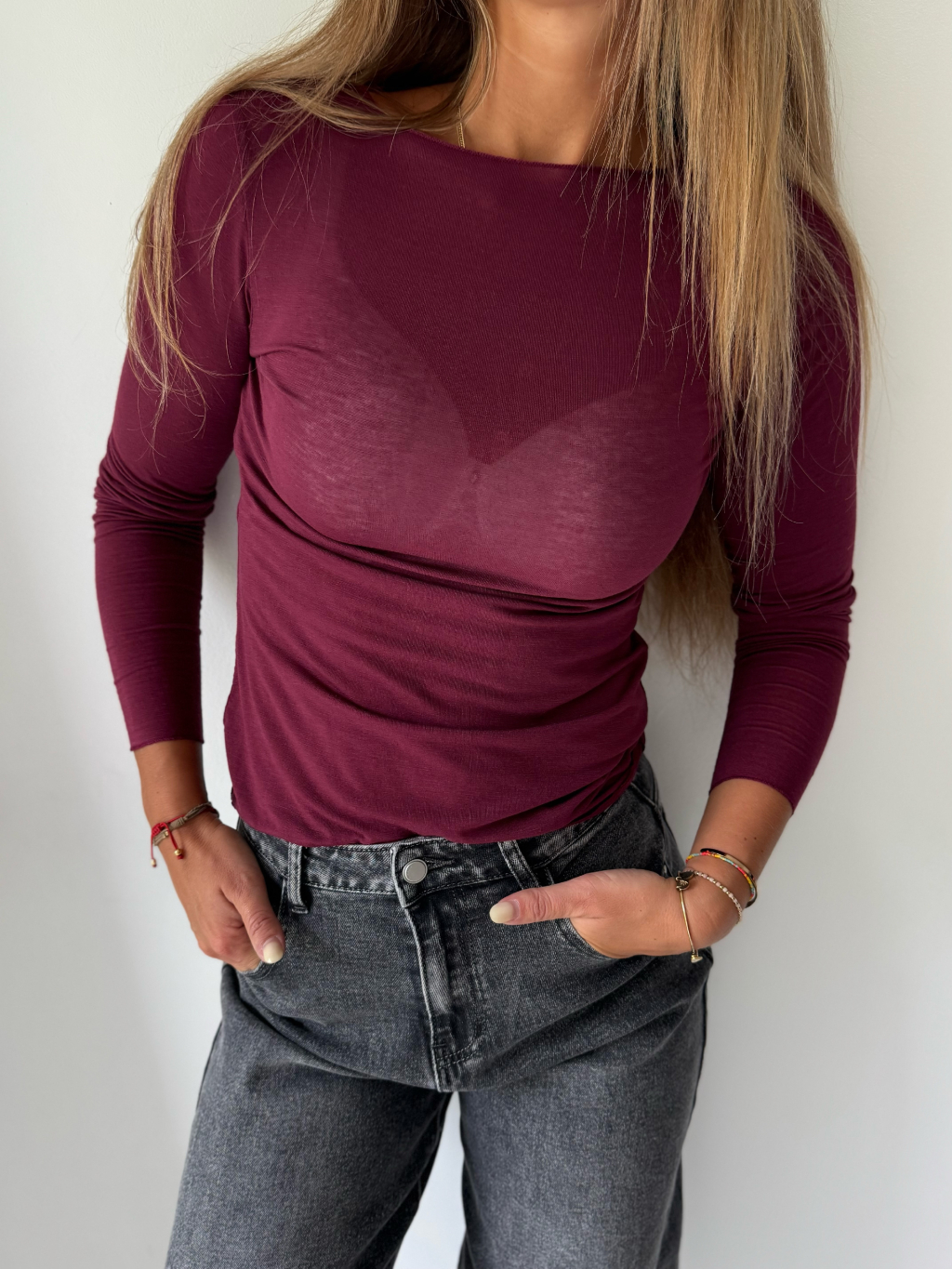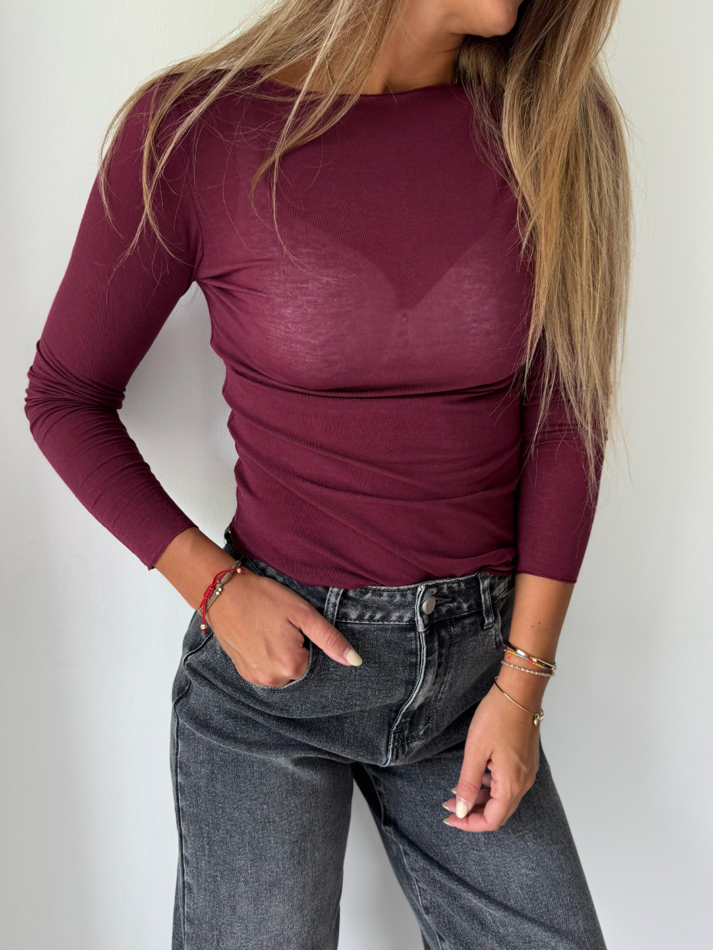 Triko s kašmírem vínová