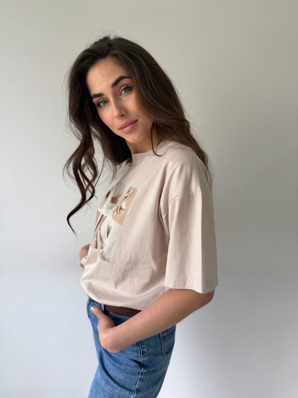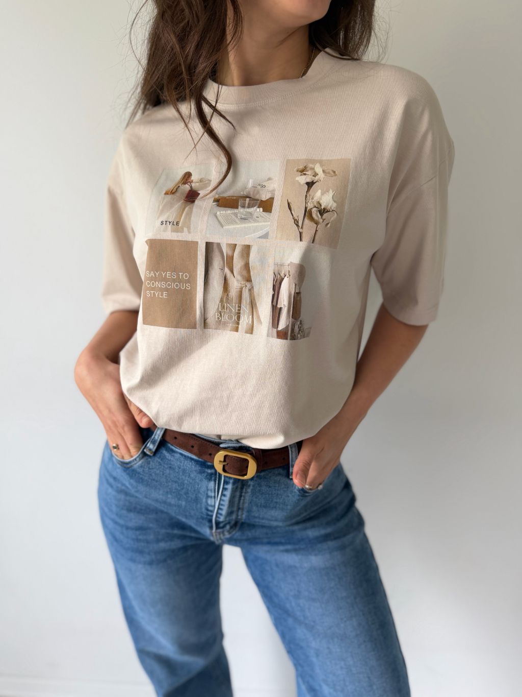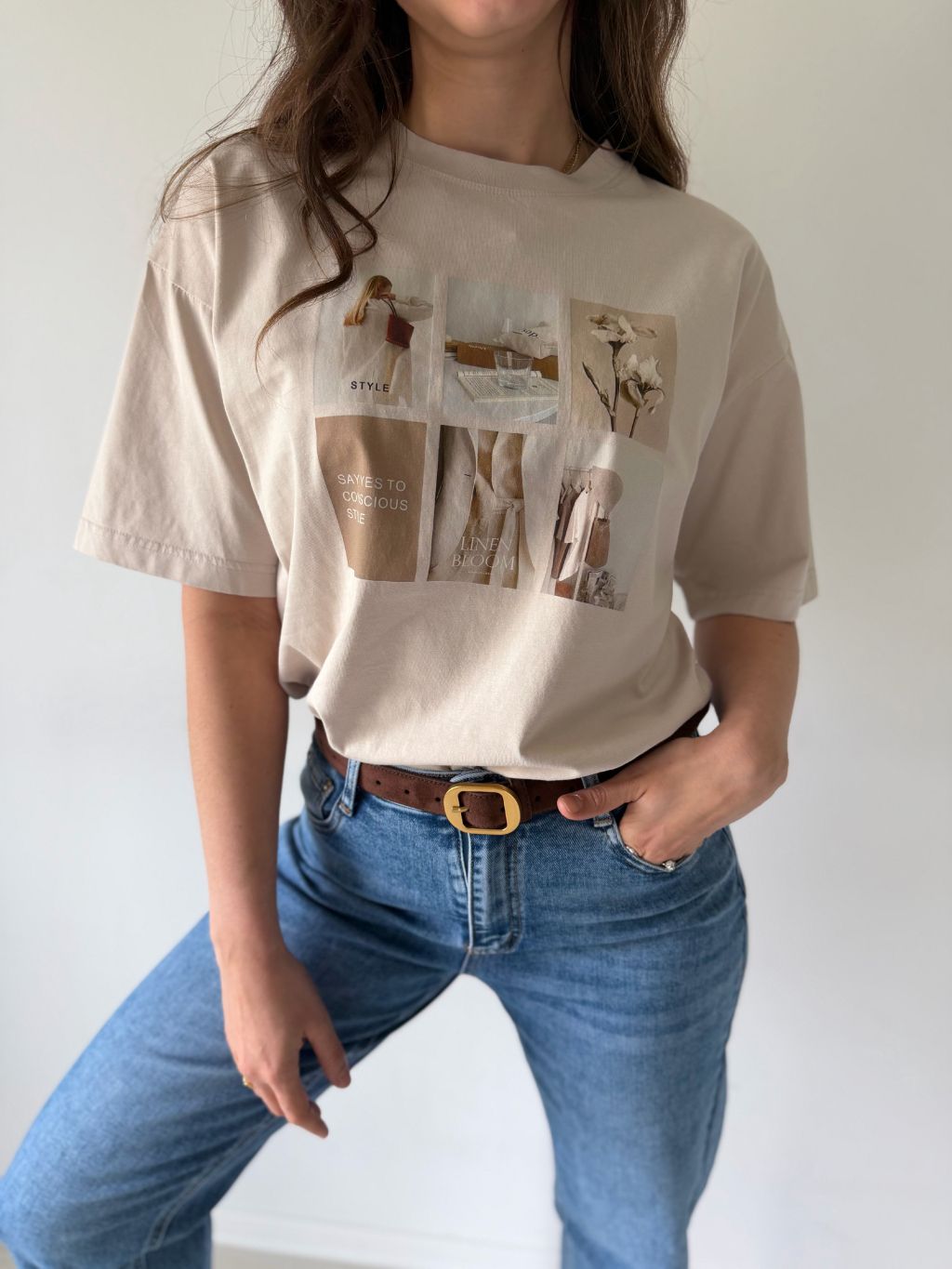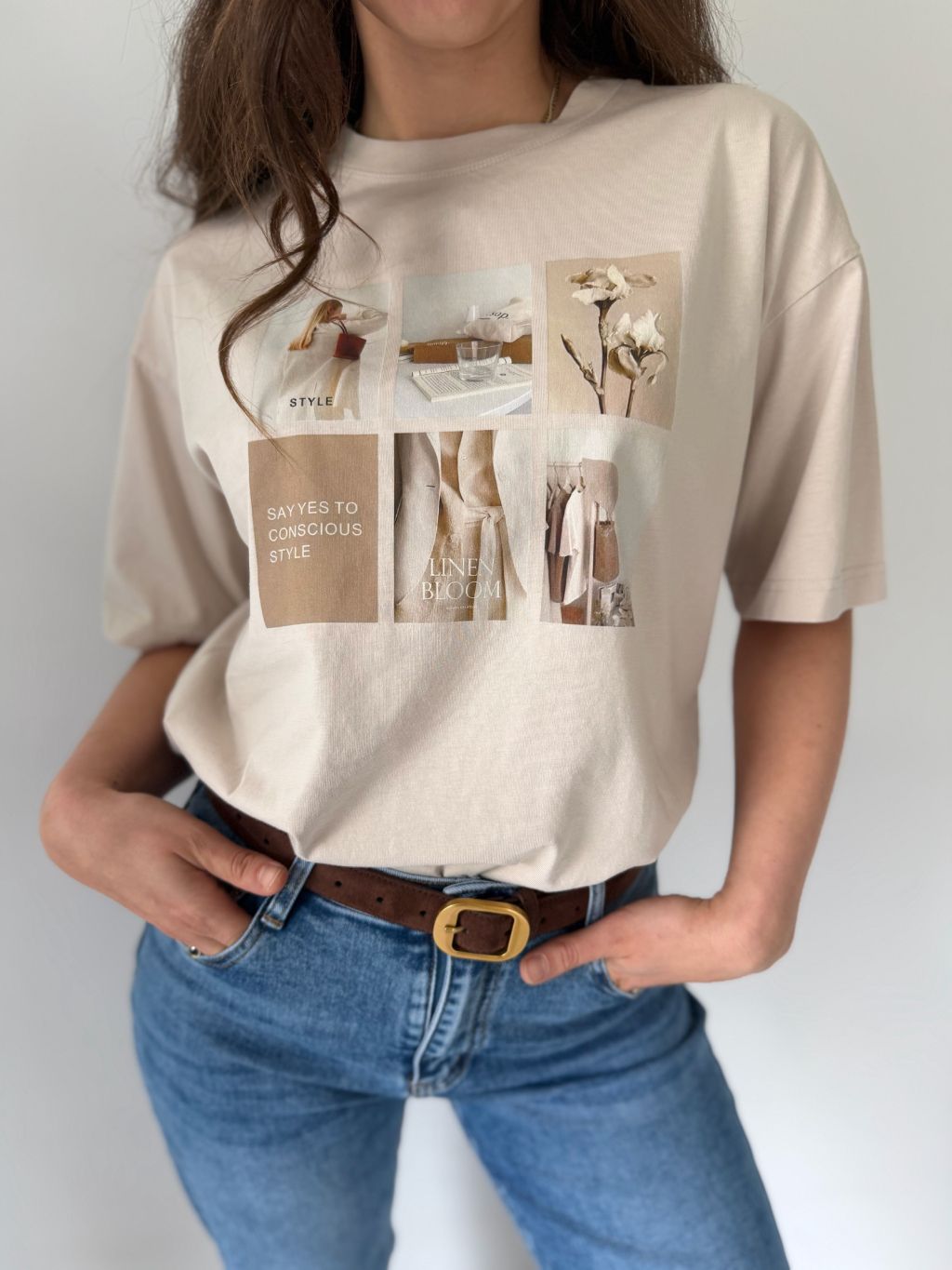 Triko s potiskem style krémová