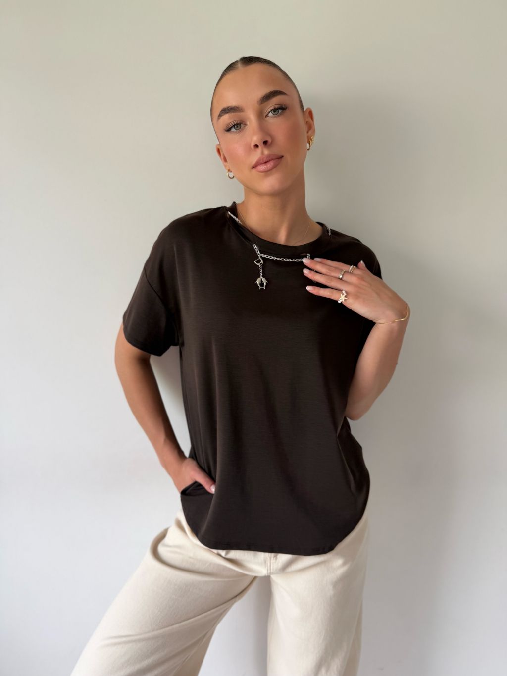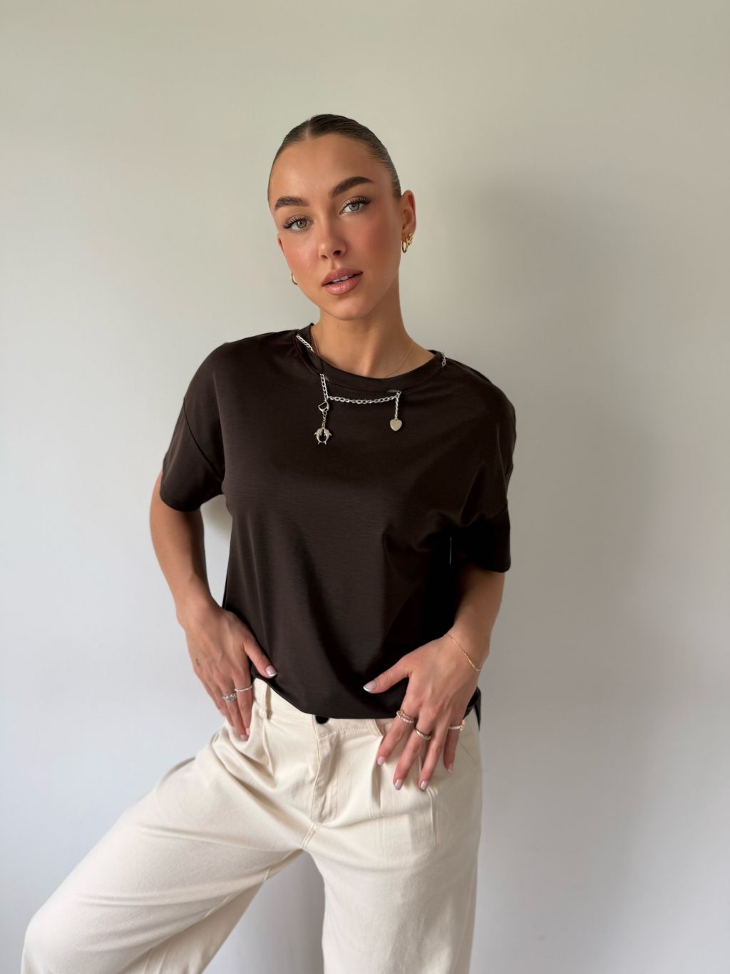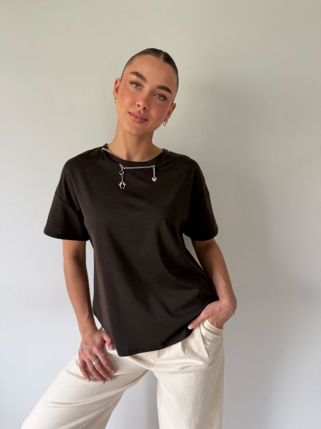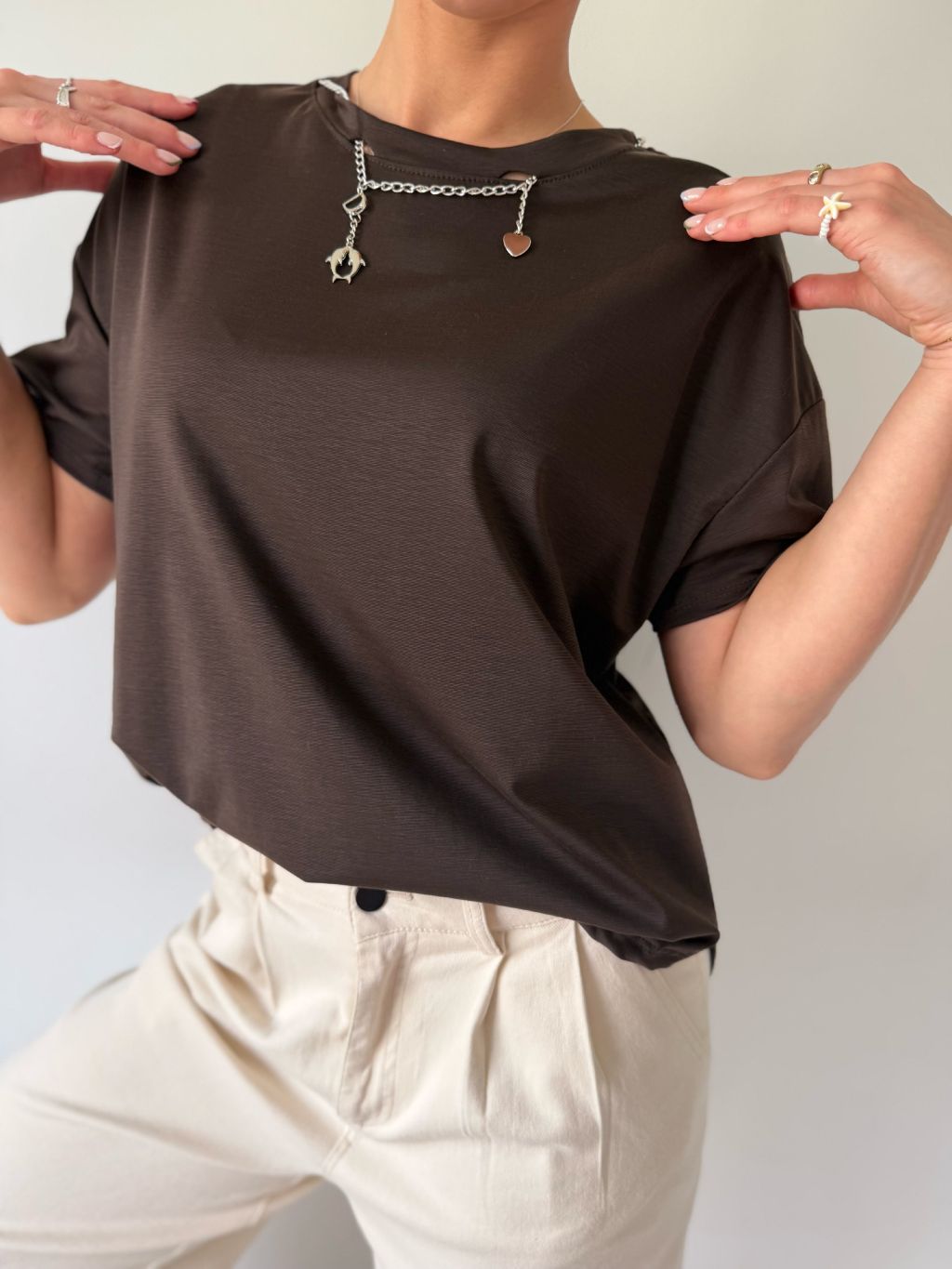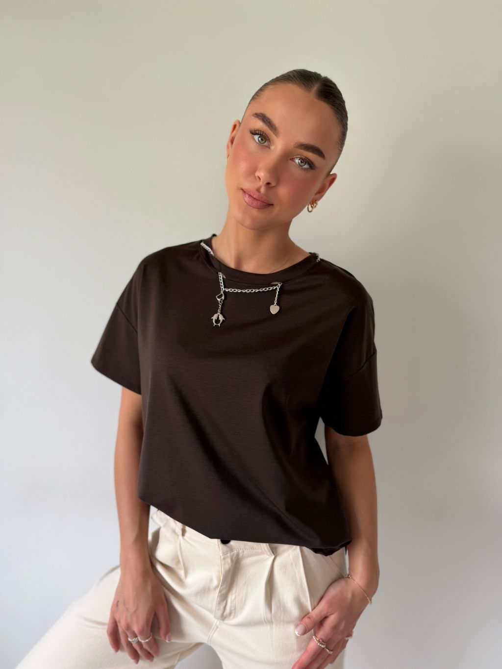 Triko s řetízkem hnědá