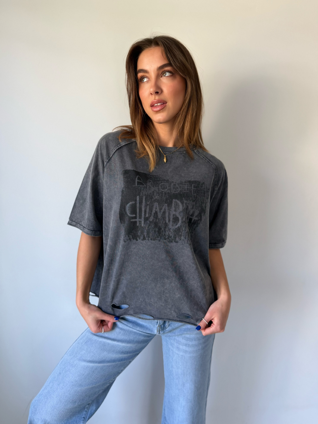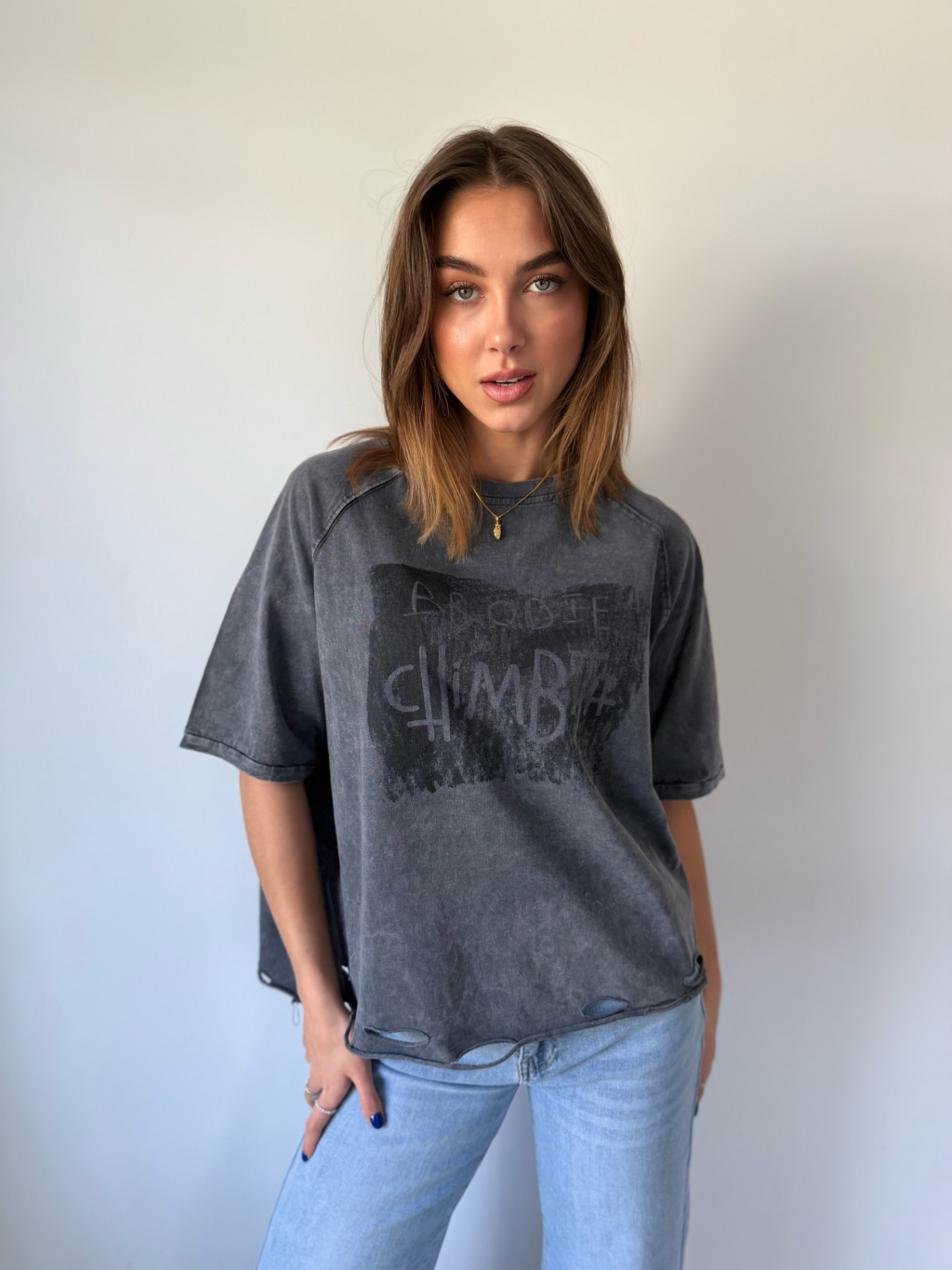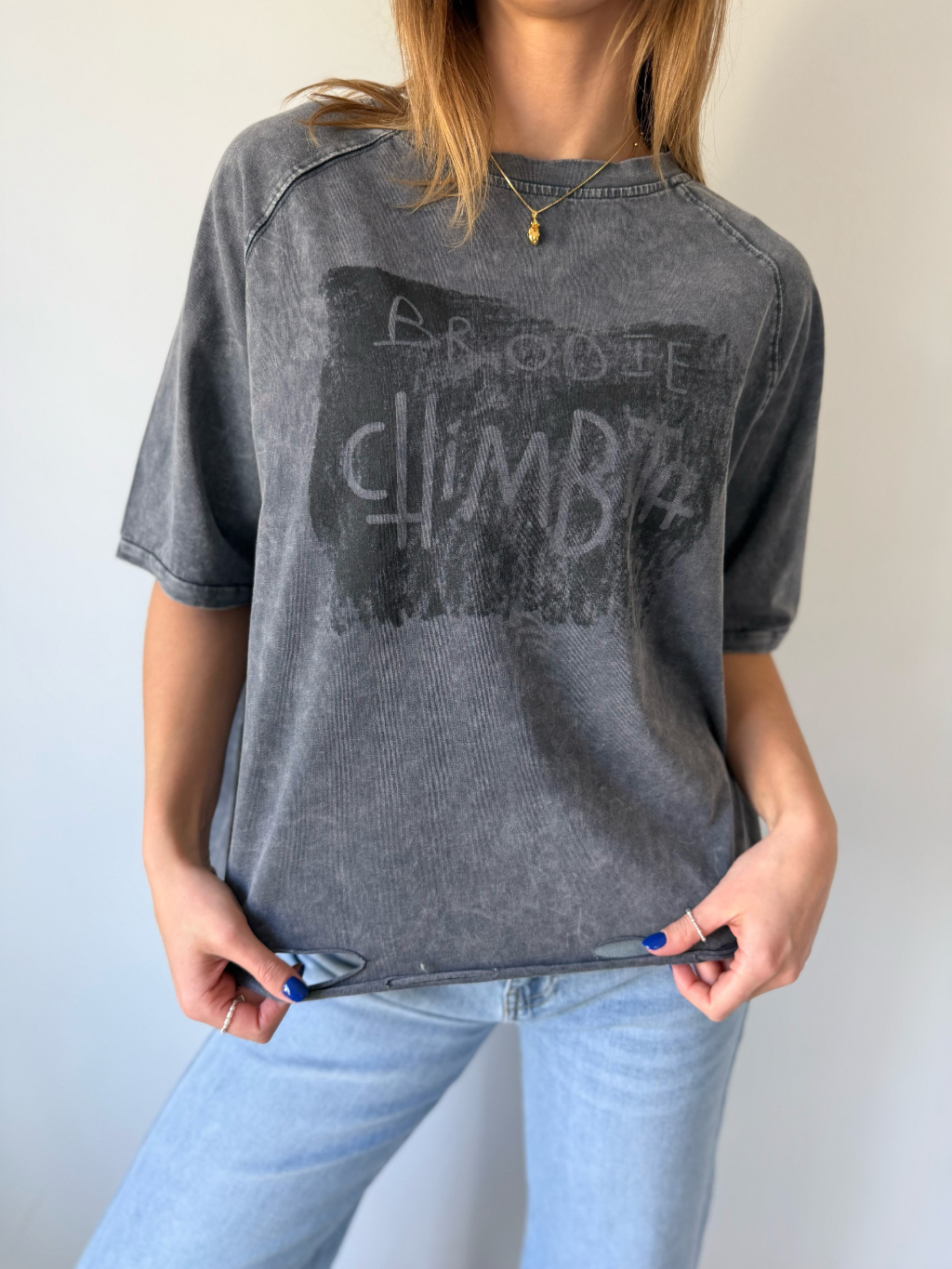 triko s trháním. triko s nápisem. triko volné