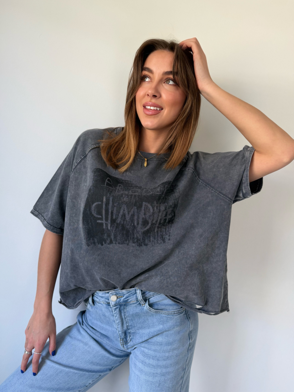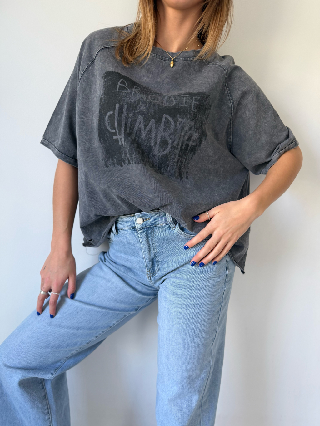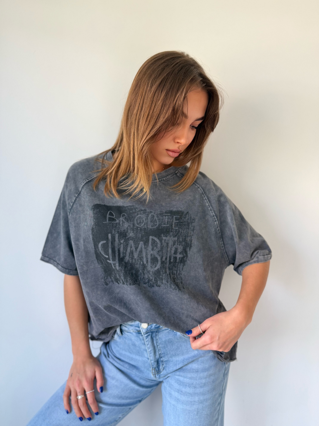 triko s trháním. triko s nápisem. triko volné